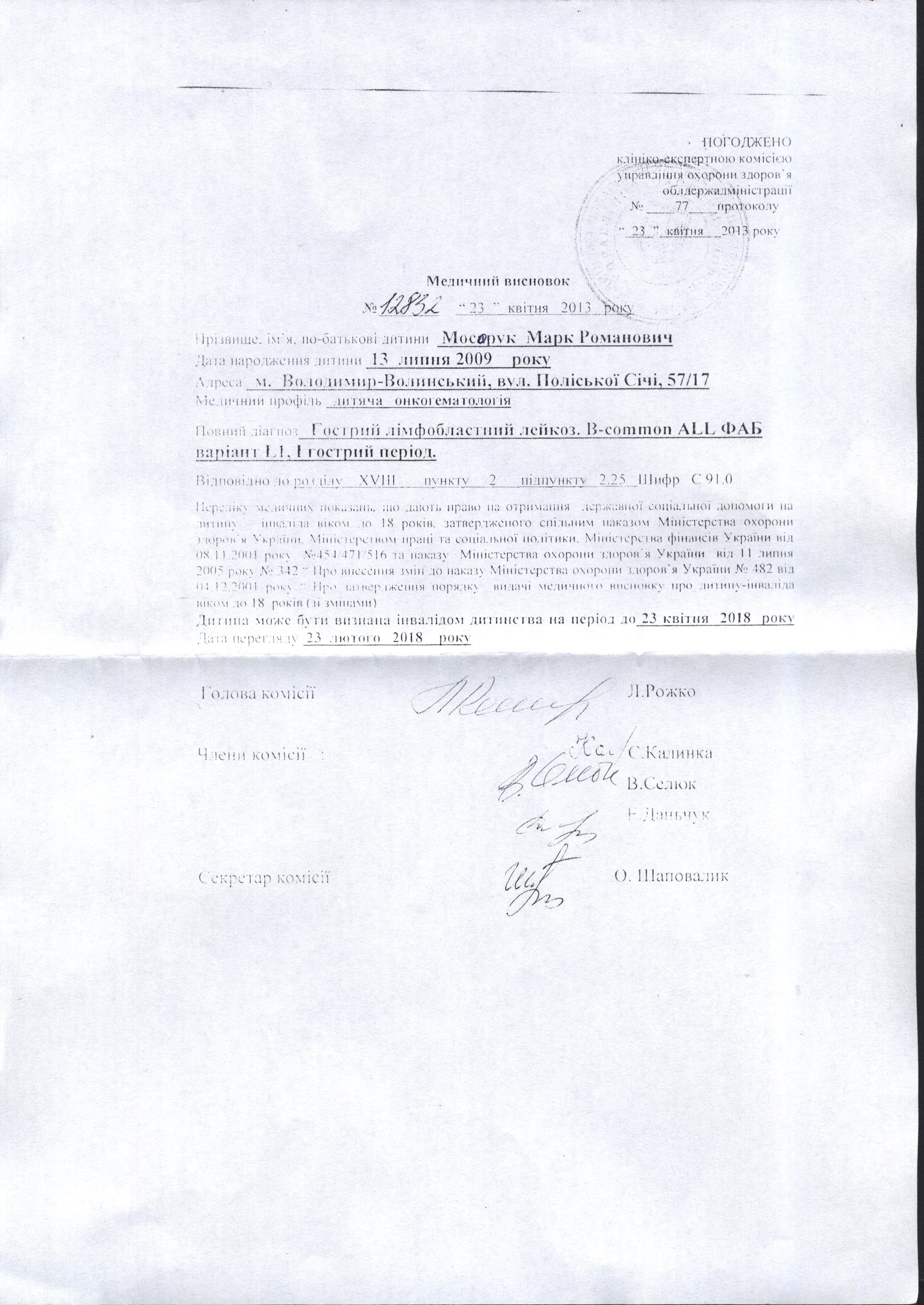 За два роки після трагедії у подружжя народився ще один хлопчик – Марк, а після нього – Кирил. Молоді батьки тішилися, якими гарними та слухняними ростуть. Та біда, що зовсім неочікувано постукала у двері, знов ледь не вибила ґрунту з-під ніг: страшна недуга вгризлася у тільце трирічного Марка. Йому поставили діагноз «гострий лімфобластний лейкоз».