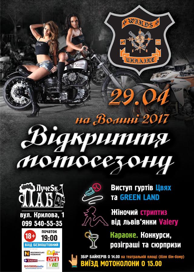 Опісля усіх бажаючих кличуть на головну байкерську вечірку, яка відбудеться у ЛучеSк-пабі, вулиця Крилова 1. Початок заходу о 19:00, - повідомляють організатори заходу.