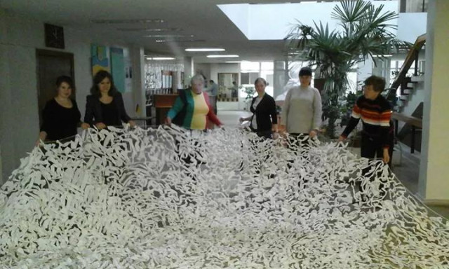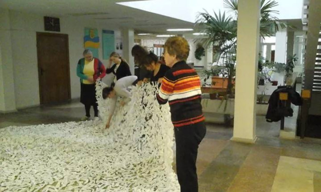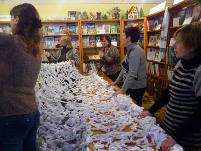 Бібліотекарі Волині сплели «рекордну» маскувальну сітку