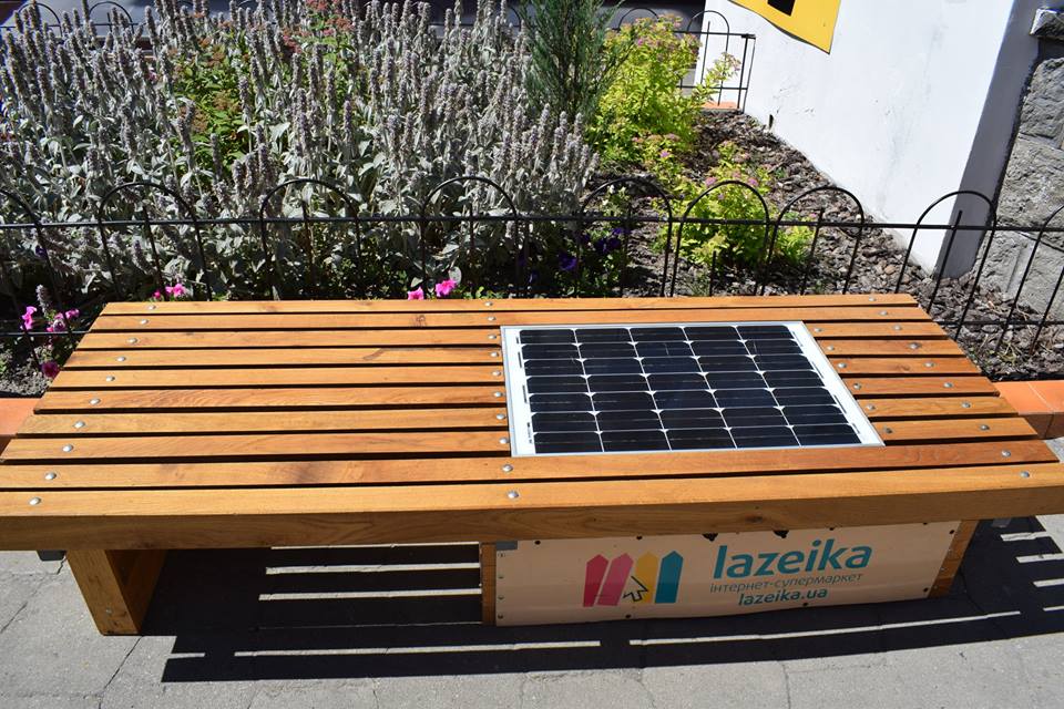 Біля луцького ЦНАПу з'явилася лавка із сонячною батареєю