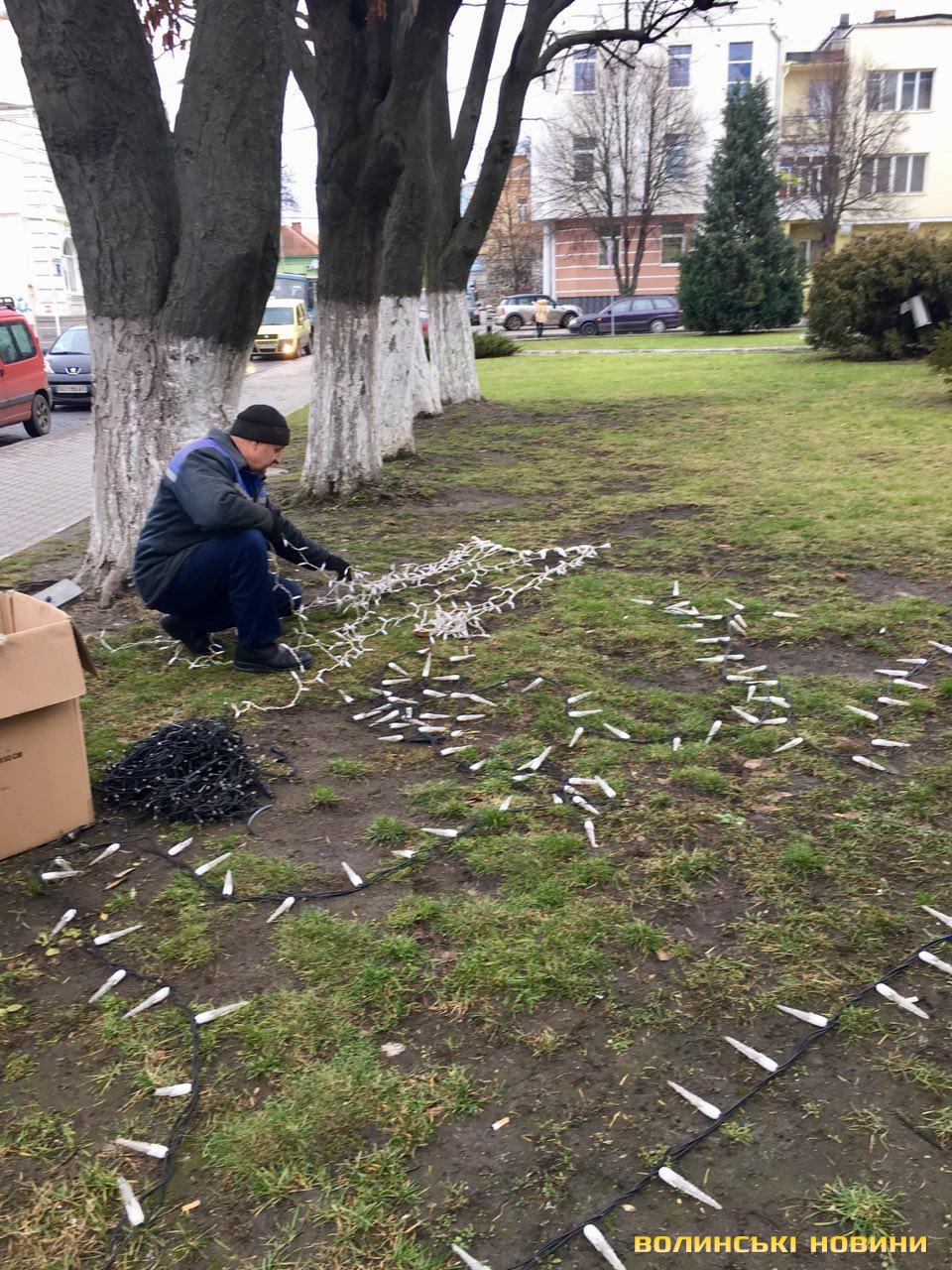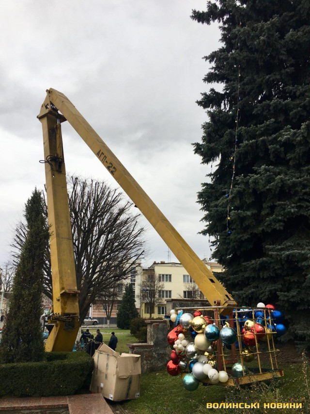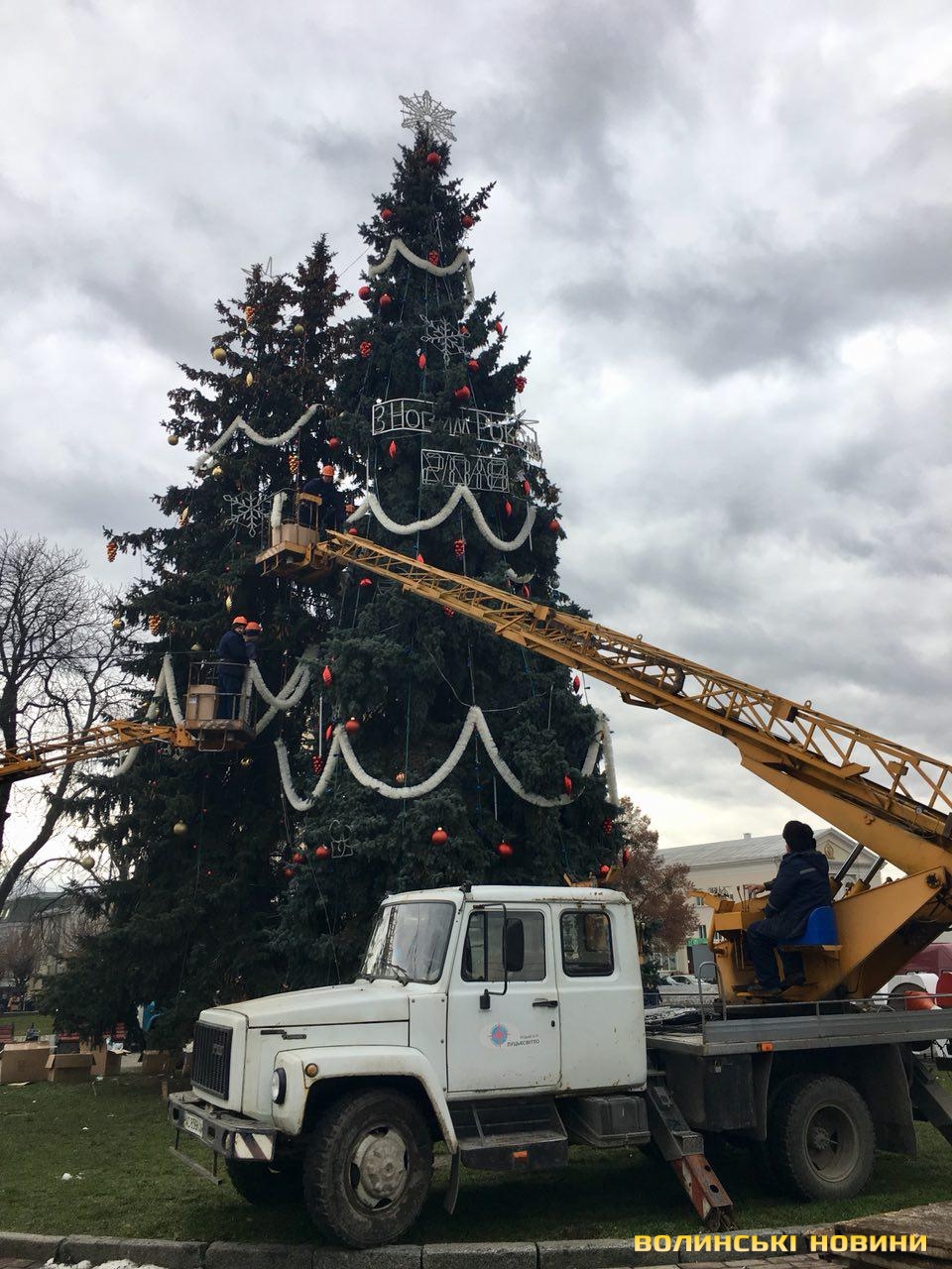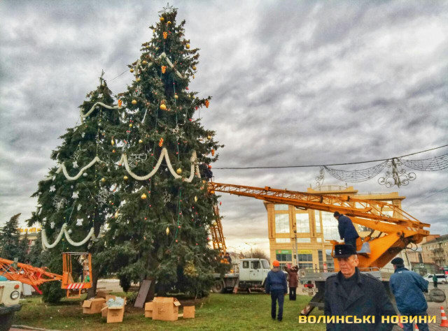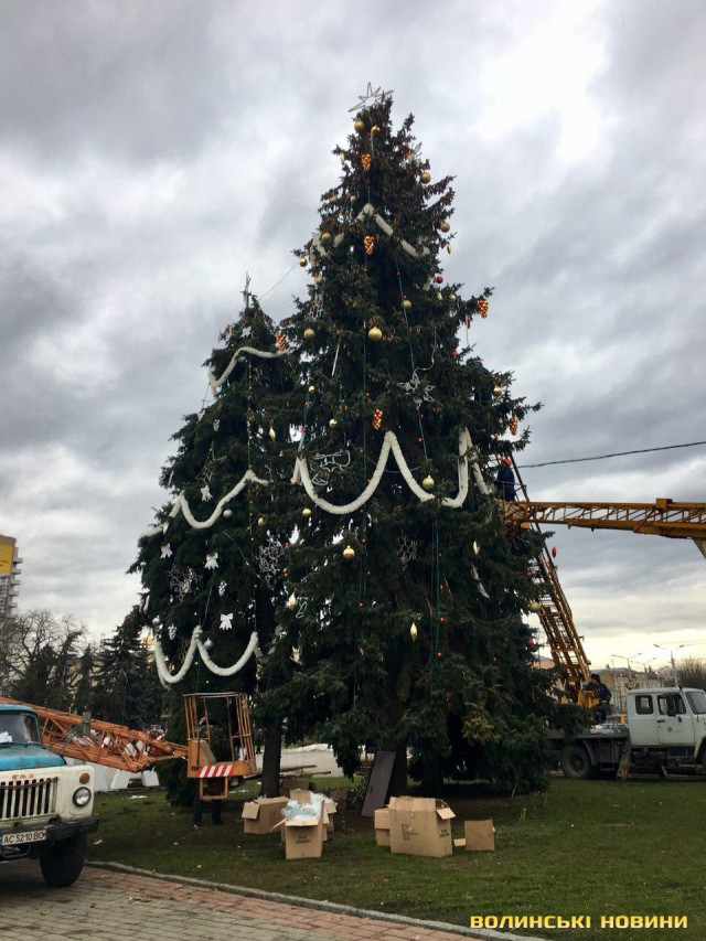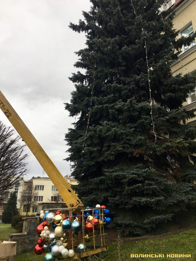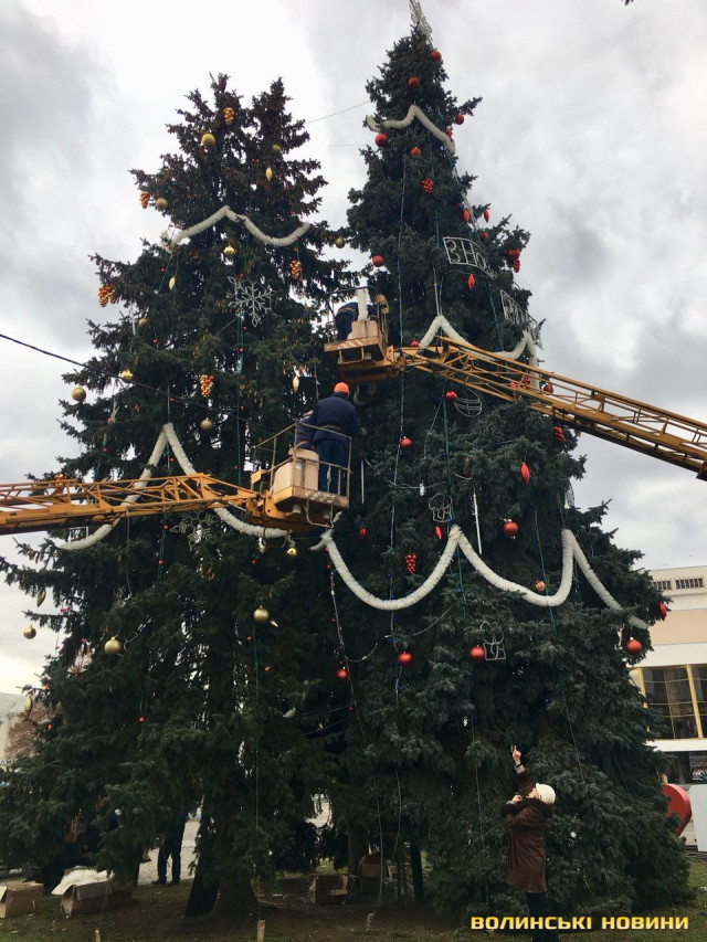 Уже сьогодні, 15 грудня, в той час, поки у стінах ради відбувалося засідання позначергової 35-ї сесії, робітники КП «Луцьксвітло» приступили до наряджання пухнастої ялинки, що біля будівлі міськради.