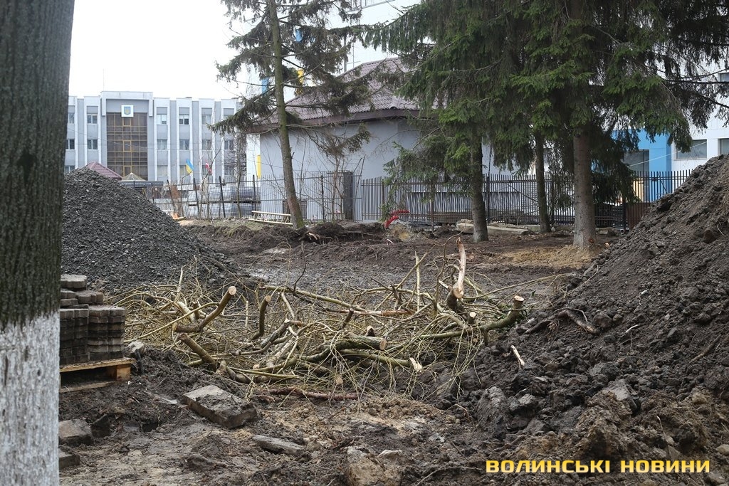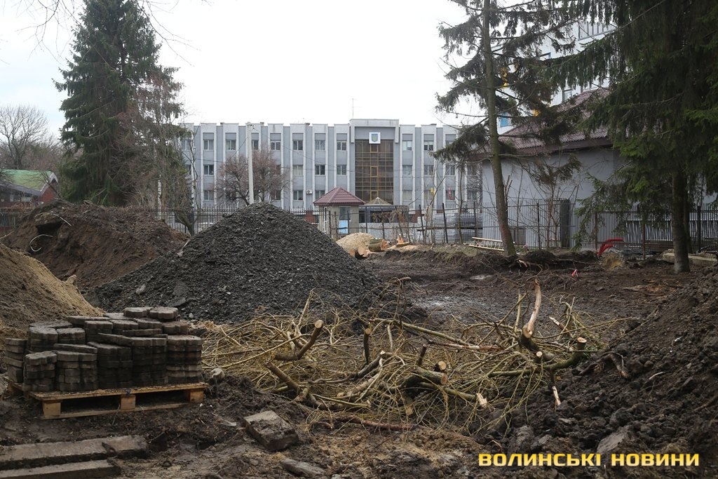 Передбачалась вирубка дерев в зеленій зоні між ТРЦ «Промінь» та Центральним басейном Луцька й облаштування на цьому місці парковки.
