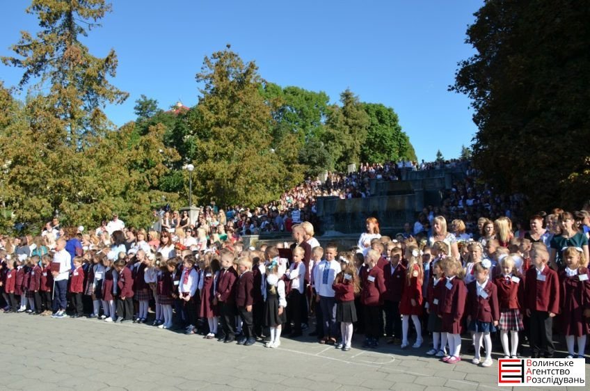Десятки дітей у бантах та з букетами і схвильовані батьки зранку заполонили центр міста: всі поспішали на урочисту лінійку із нагоди Дня знань до Луцької гімназії №4 імені Модеста Левицького, - пише Волинське агентство розслідувань.