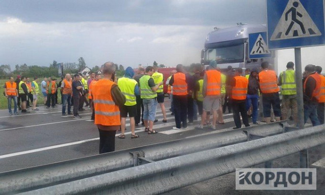 Біля «Ягодина» водії вантажівок перекривали міжнародну трасу
