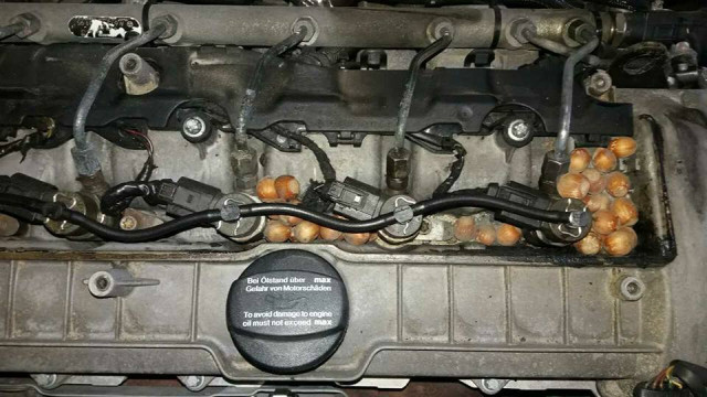 Білка зробила запас харчів на зиму під капотом автомобіля волинянина - насклала лісових горіхів просто на кришці двигуна.