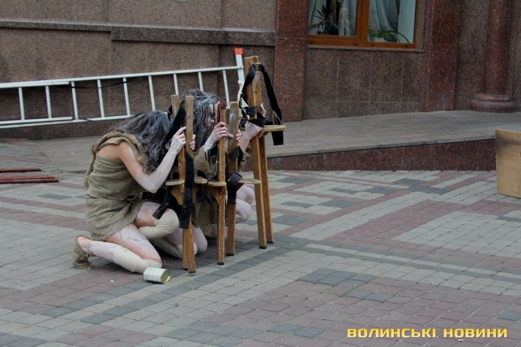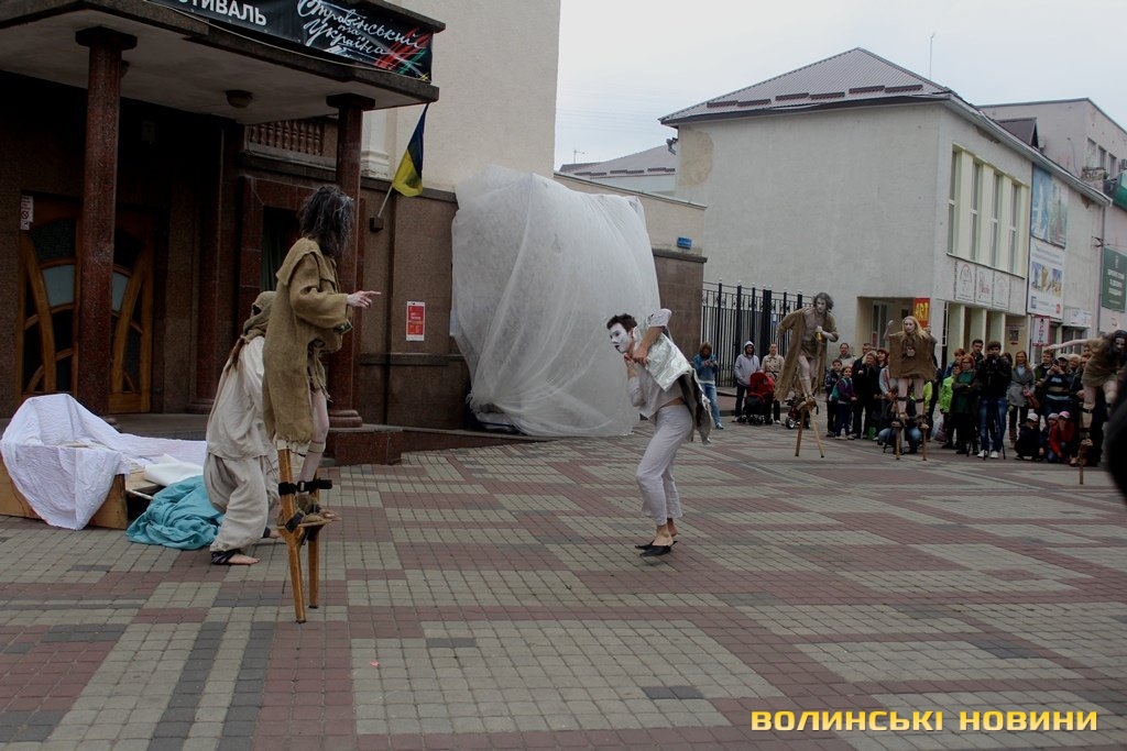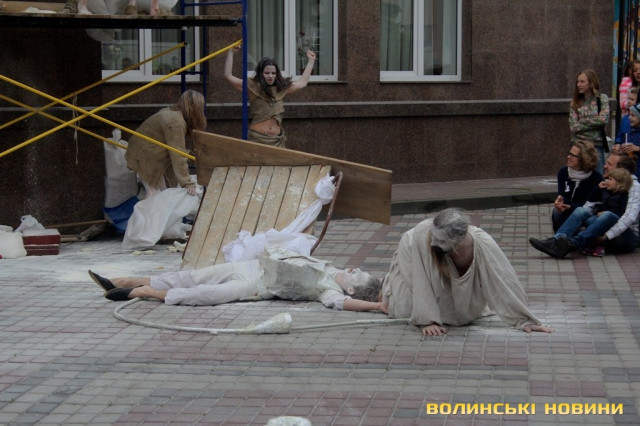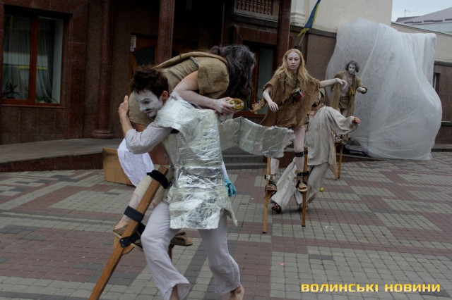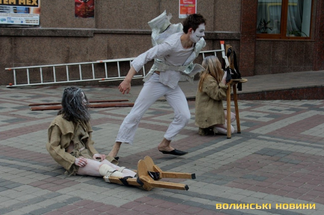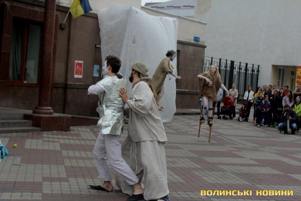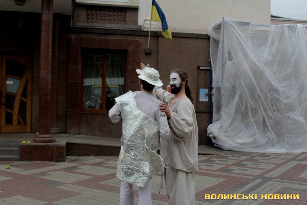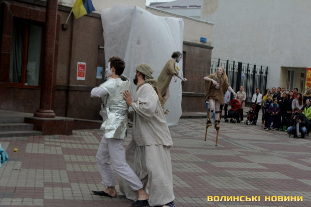 Експериментальний театр з Мінська EYE представив лучанам вуличну постановку «Дон Кіхот».