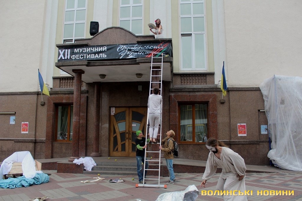 Сьогодні, 24 травня, актори поділилися з лучанами власним баченням шедевру Мігеля де Сервантеса Сааведра. Більш того, глядачі змогли стати безпосередніми учасниками дійства.