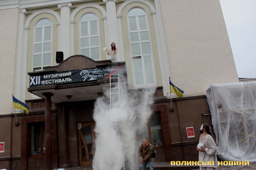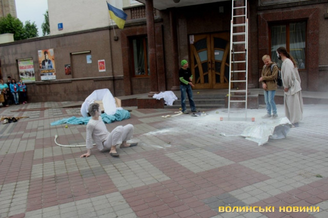 Нагадаємо, у Луцьку триває фестиваль ArtTerritory, в рамках якого відбуваються різноманітні мистецькі заходи, у тому числі й театральні постановки. Так, до Луцька завітав експериментальний театр зі столиці сусідньої Білорусі EYE.
