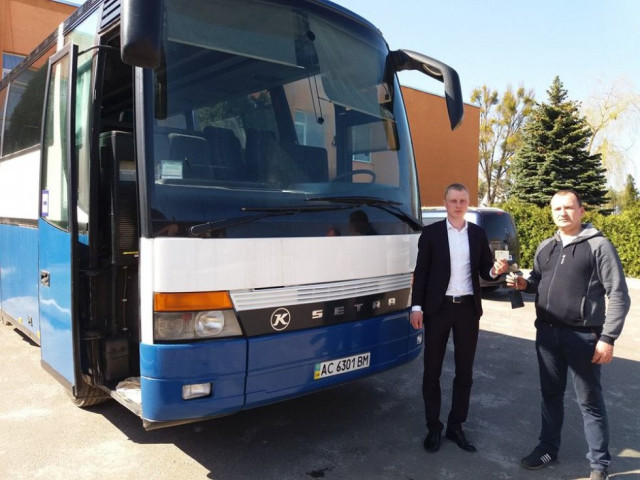 Автобус SETRA з номерними знаками АС 6301 ВМ, яким привезли працівників Маневицької РДА у Львів на зустріч із Петром Порошенком, належить відділу культури райдержадміністрації.