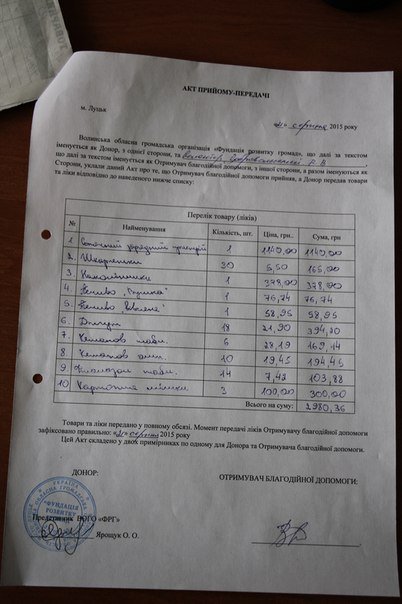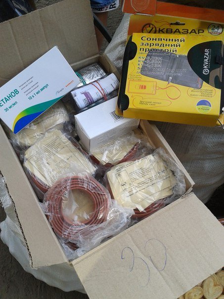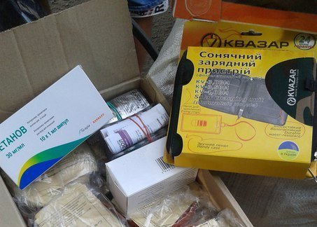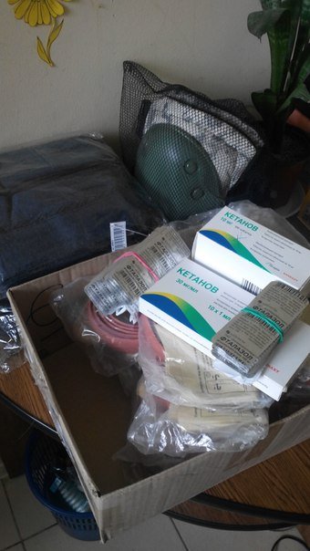 Крім того, організація передала одяг, медикаменти, та продукти харчування: шкарпетки, наколінники, кровоспинні джгути, таблетки кетанов та фталазол, печиво й картоплю.