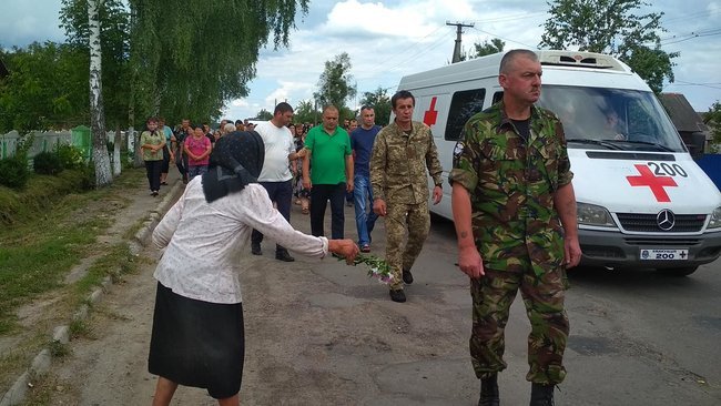Кортеж із тілом загиблого бійця люди зустрічали на колінах. У центрі міста Дубровиця Героя зустріли з квітами та молитвою.