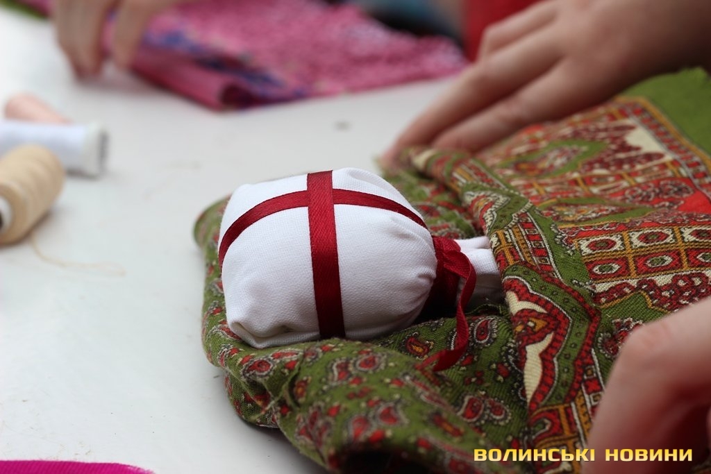 Ляльку-наречену традиційно робили, коли дівчина була на виданні. Її вдягали найдорожче - вішали намисто, прикраси та віночки. Люди вірили, що таким чином можна привабити багатого нареченого.А ляльку-берегиню робили на Різдво і обов’язково клали всередину символ тепла і затишку – вовну. Клали й зерно – для того щоб був врожайним рік, а гроші для того, щоб сім’я не бідувала. Майстриня зазначає, що раніше для виготовлення ляльок використовували природні матеріали. Саме таку під час майстер-класу робили матері сімей біженців зі Сходу та місцеві активісти для українських військових, щоб ті живі та здорові поверталися додому з перемогою.Основа ляльки – це голова. Як правило, її крутять з вати. Після цього мотають хрестик, вже згодом – хустинку, плаття, руки та фартушок. Якихось особливих вимог до оформлення ляльки немає, тому рукодільниці самі обирали колір стрічок та «одягу» для ляльки на власний смак. Тому мотанки були яскравими та несхожими одна на одну.