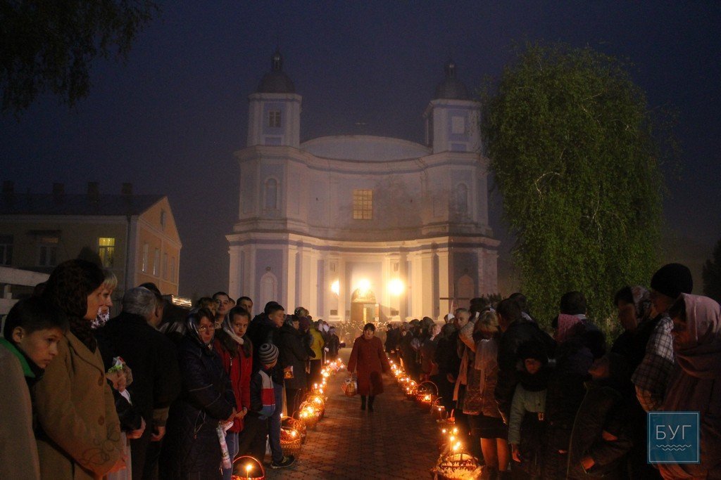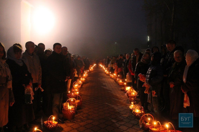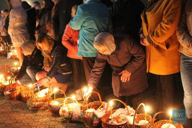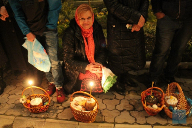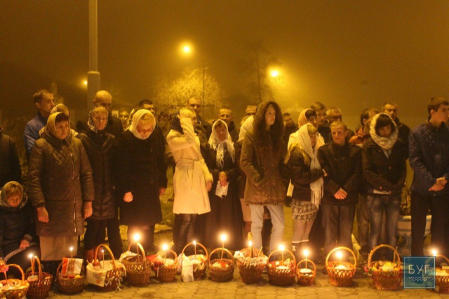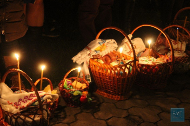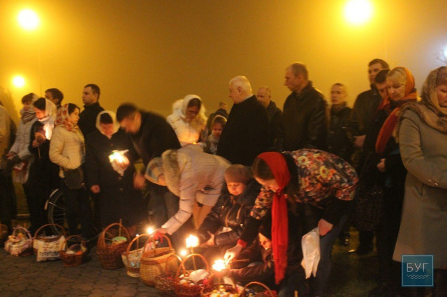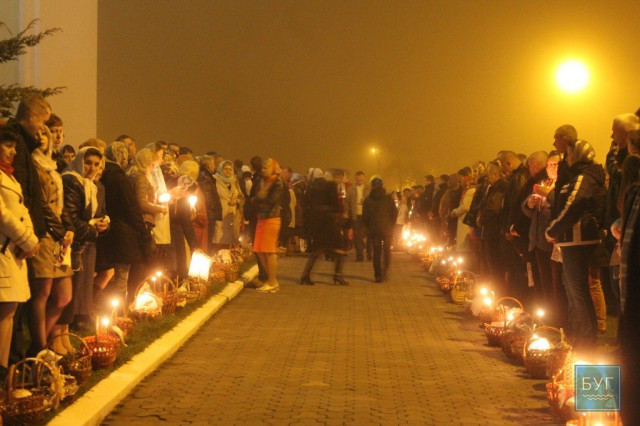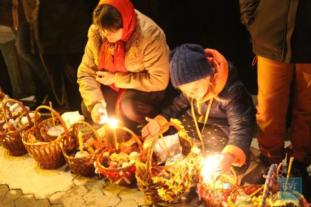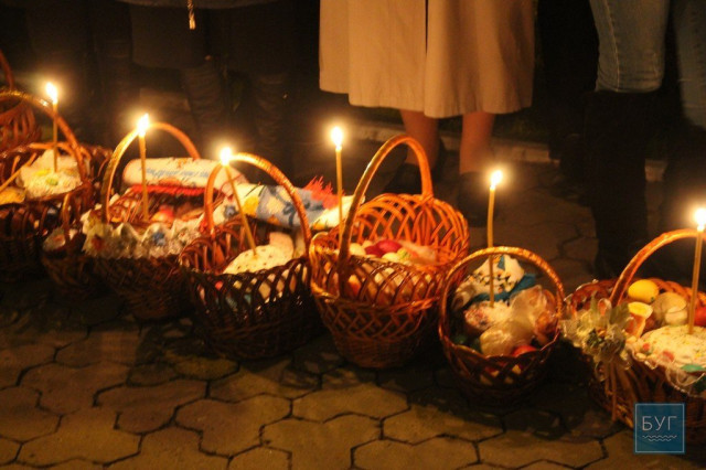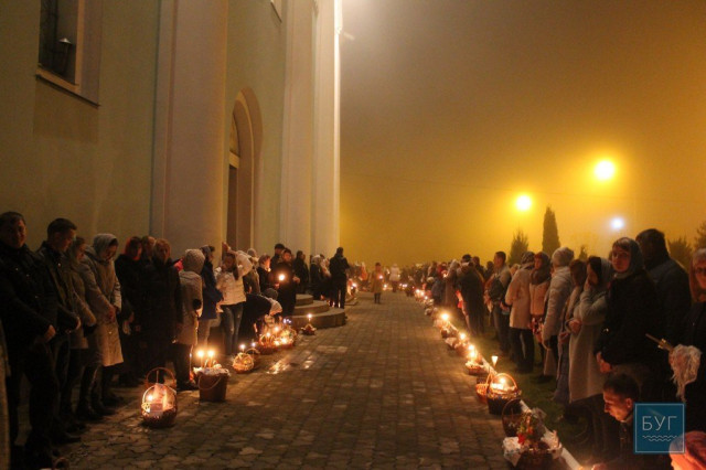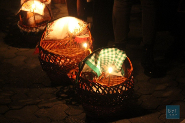 Жителі міста йшли на всенічну службу, аби освятити свої великодні кошики.