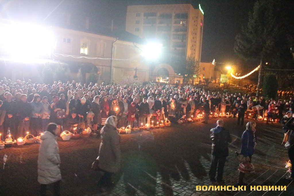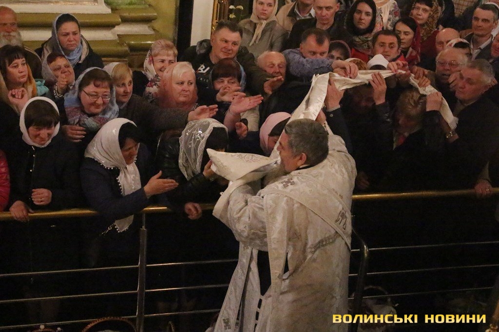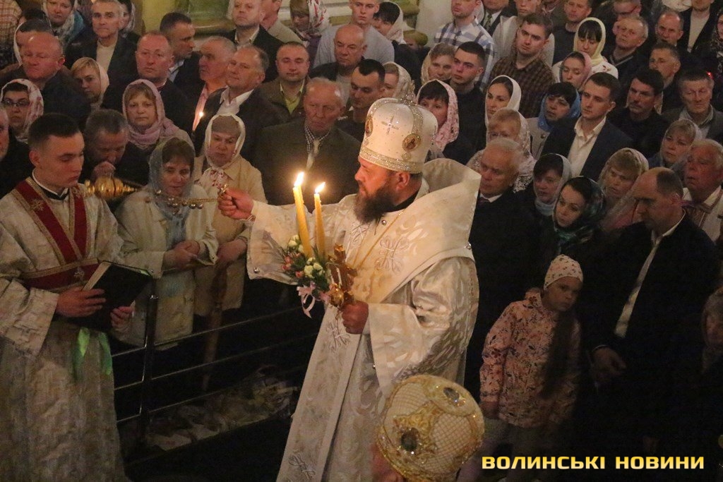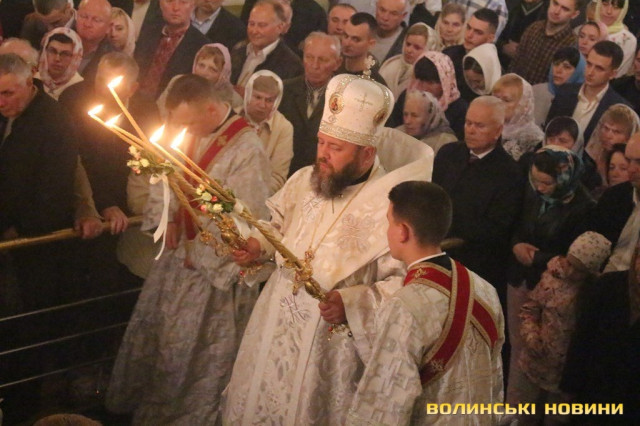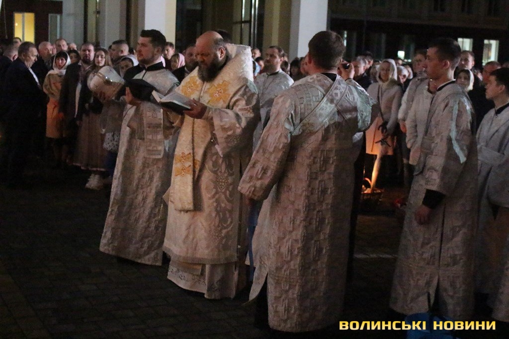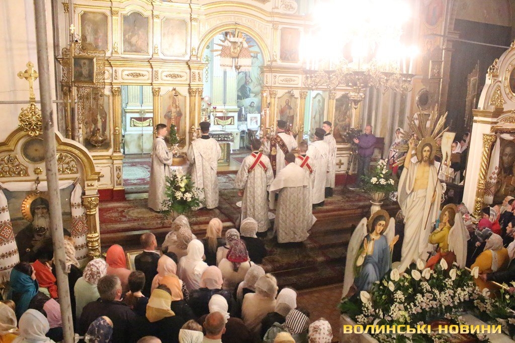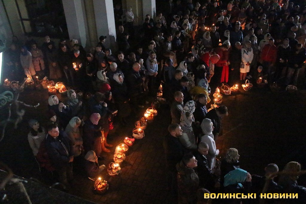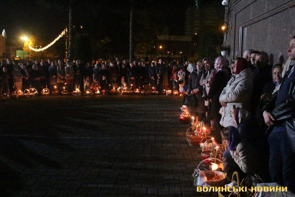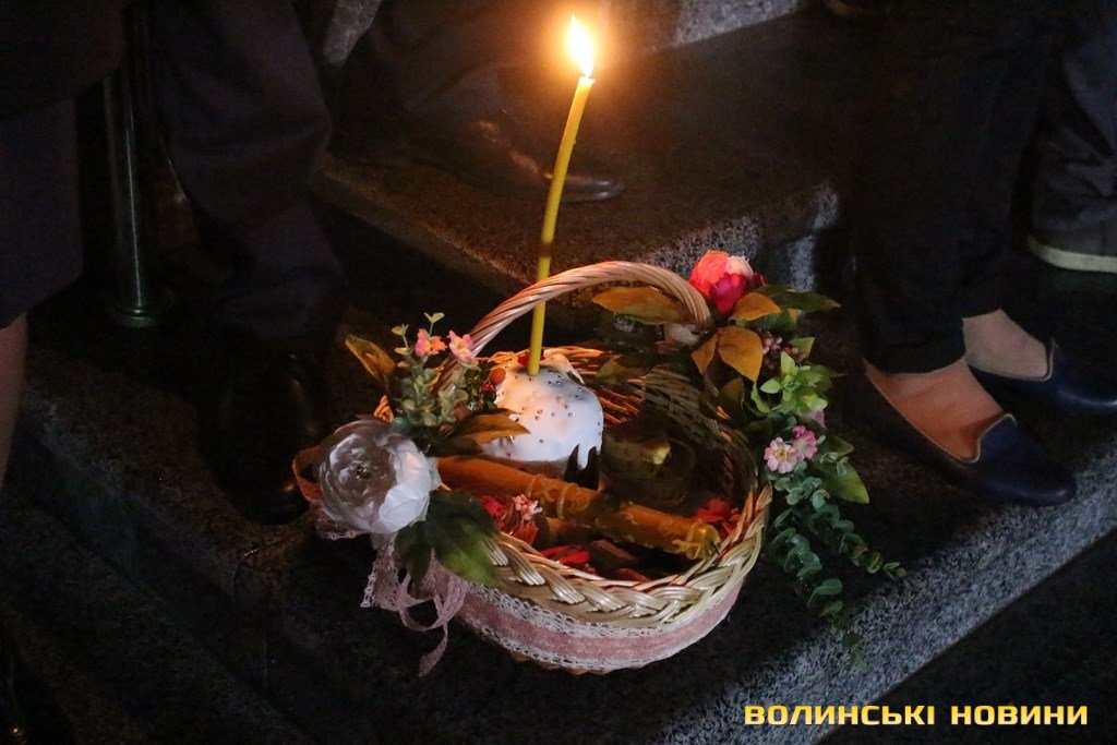 Урочисте богослужіння на честь Світлого Христового Воскресіння, під час якого Митрополит Луцький і Волинський Михаїл привіз до Луцька благодатний вогонь із самого Єрусалиму, відбулося вночі у Свято-Троїцькому кафедральному соборі. Після святкового молебня владика та інші священослужителі храму освятили вірянам пасхальні кошики.