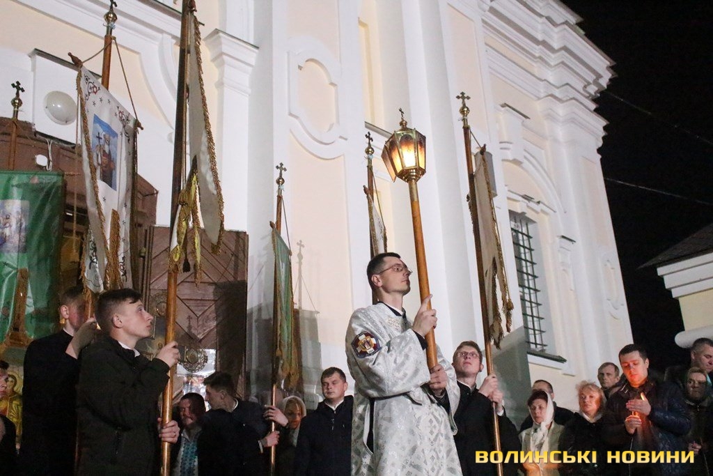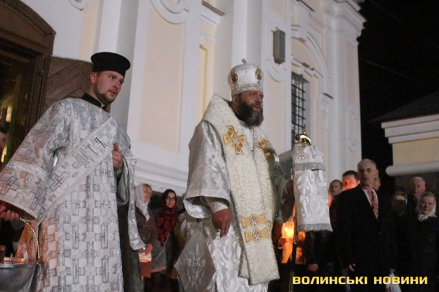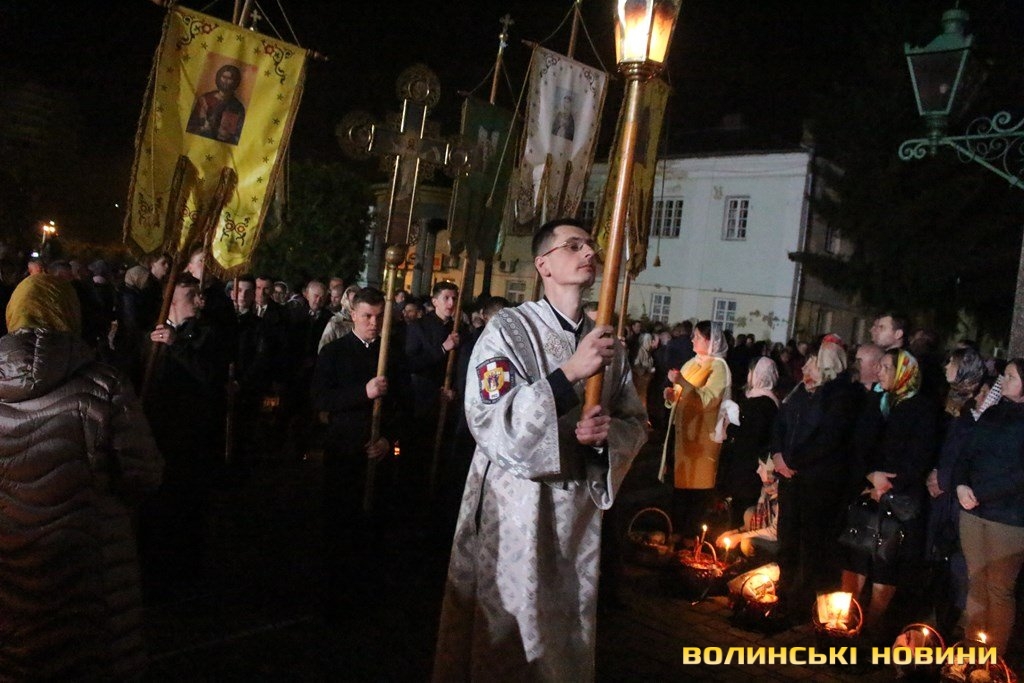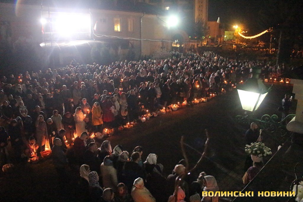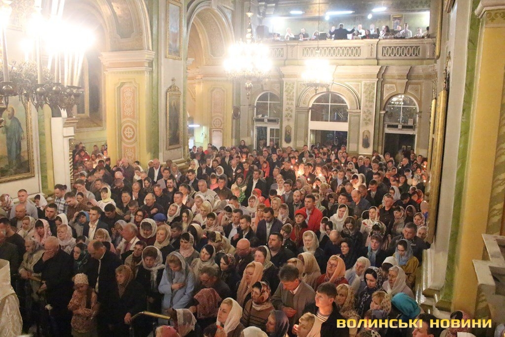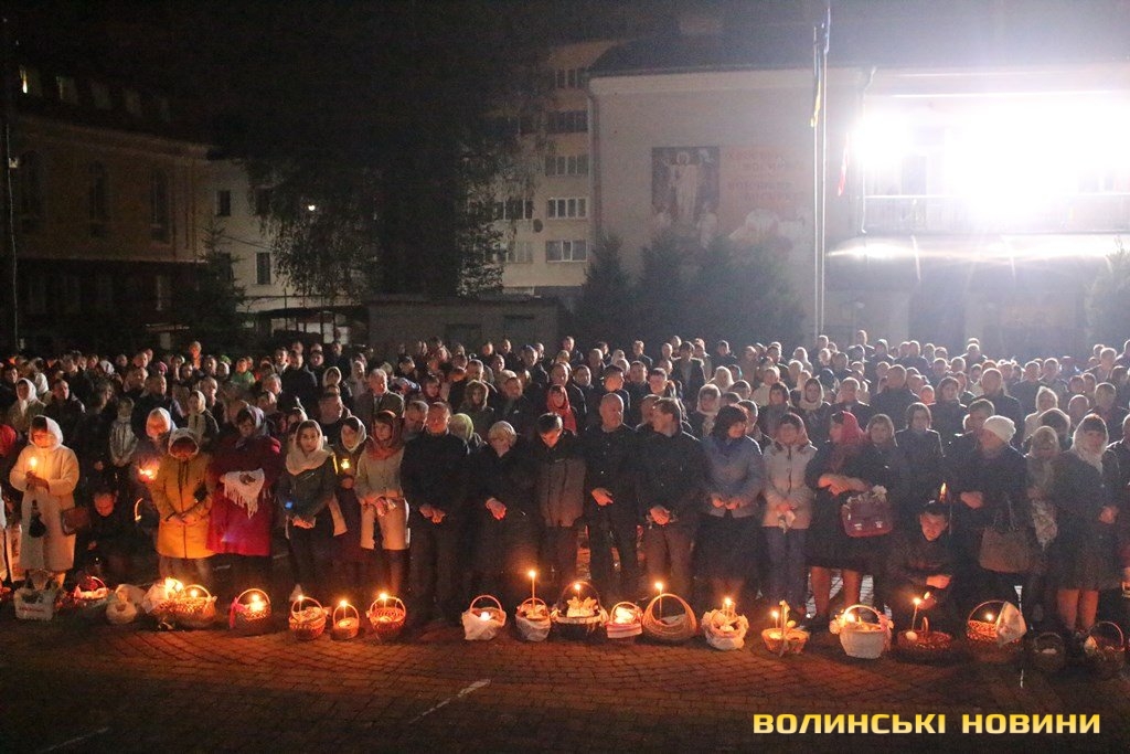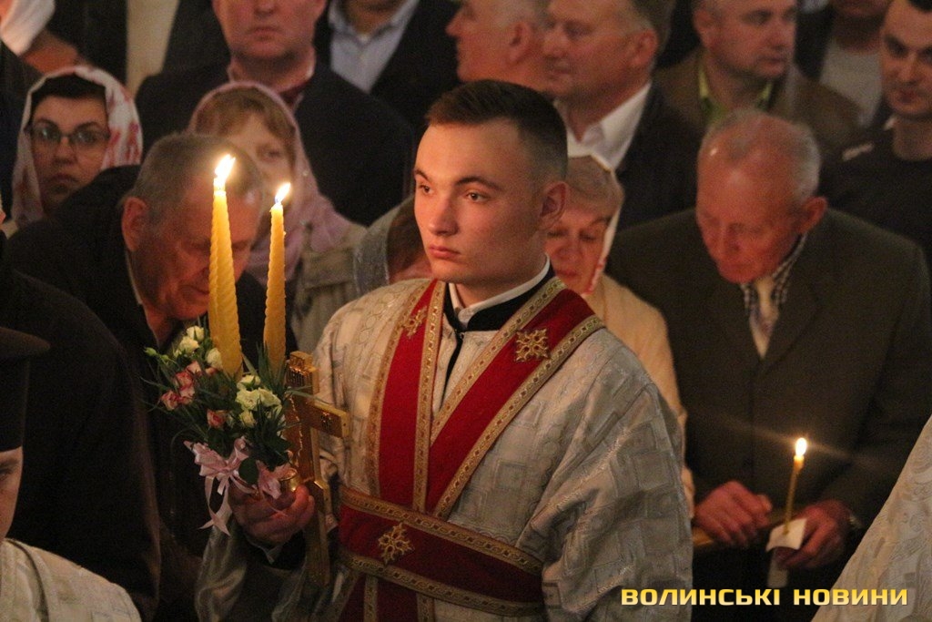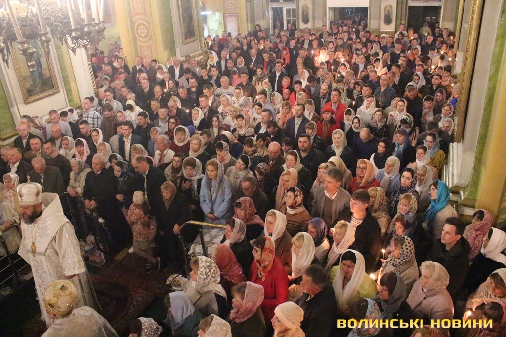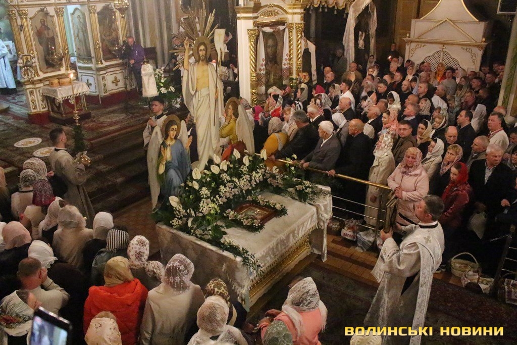 Урочисте богослужіння на честь Світлого Христового Воскресіння, під час якого Митрополит Луцький і Волинський Михаїл привіз до Луцька благодатний вогонь із самого Єрусалиму, відбулося вночі у Свято-Троїцькому кафедральному соборі. Після святкового молебня владика та інші священослужителі храму освятили вірянам пасхальні кошики.