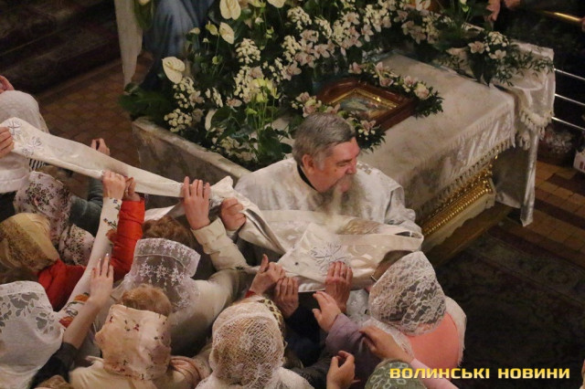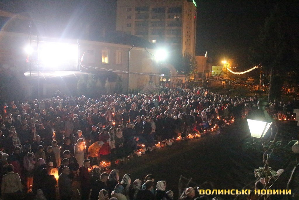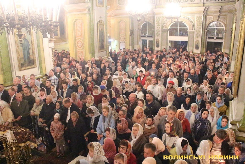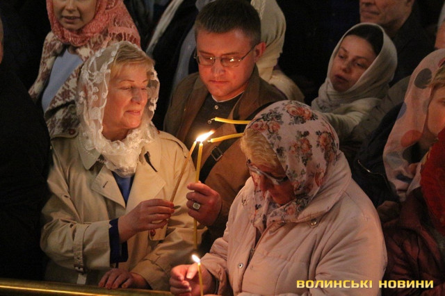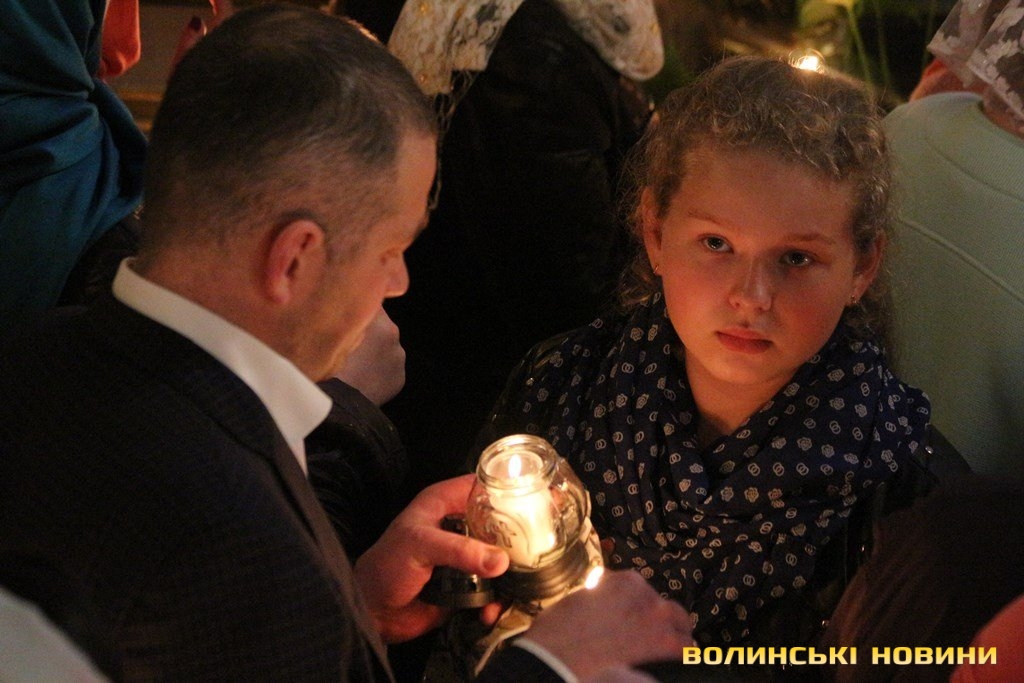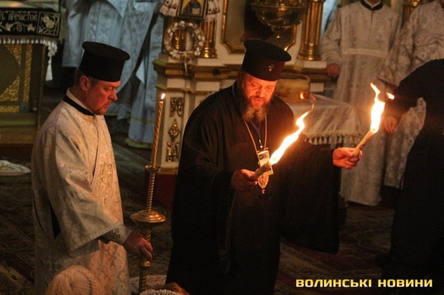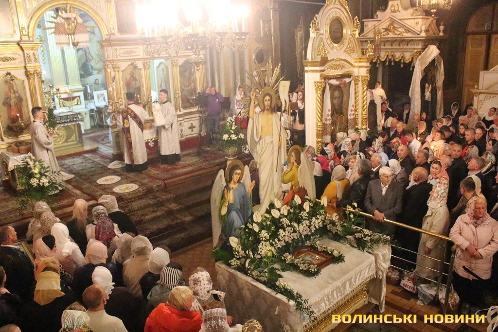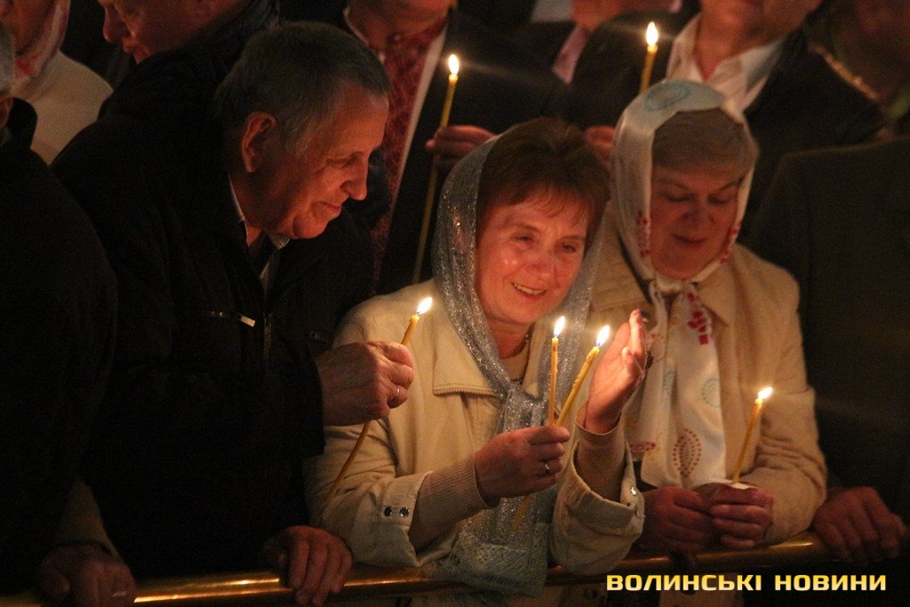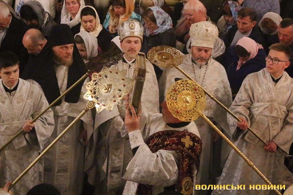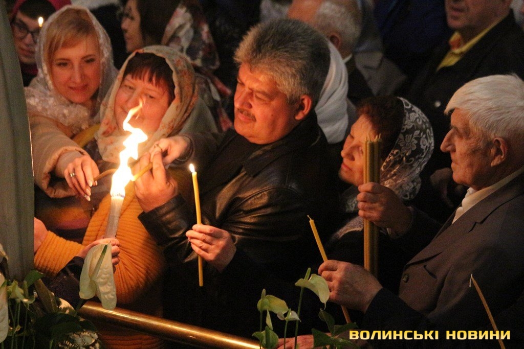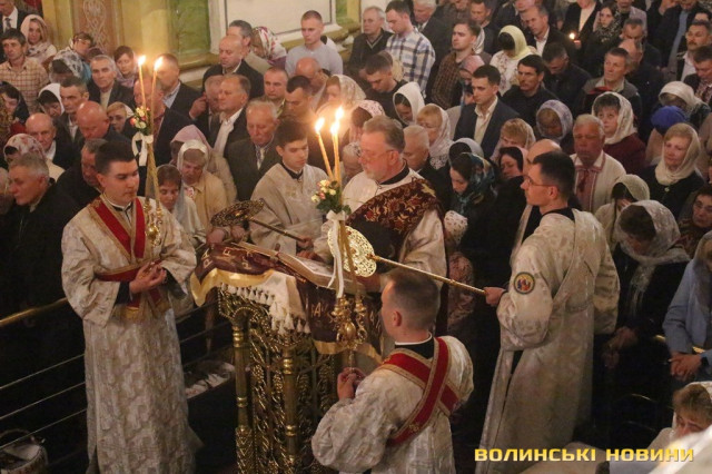 Урочисте богослужіння на честь Світлого Христового Воскресіння, під час якого Митрополит Луцький і Волинський Михаїл привіз до Луцька благодатний вогонь із самого Єрусалиму, відбулося вночі у Свято-Троїцькому кафедральному соборі. Після святкового молебня владика та інші священослужителі храму освятили вірянам пасхальні кошики.