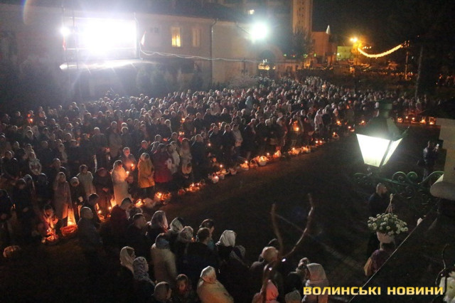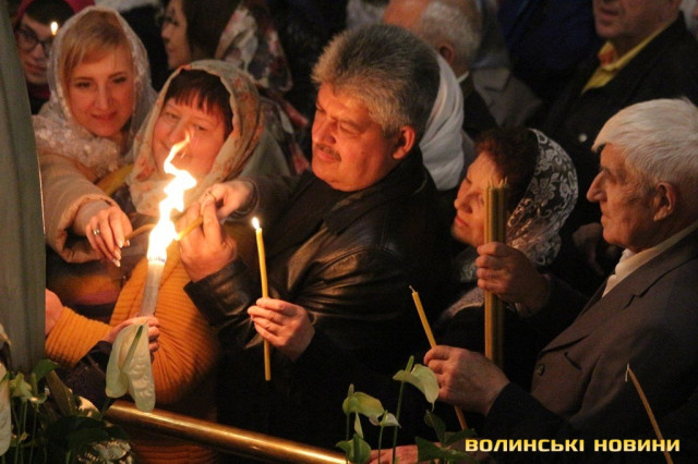 Благодатний вогонь та освячення кошиків: як Луцьк зустрічав Великдень