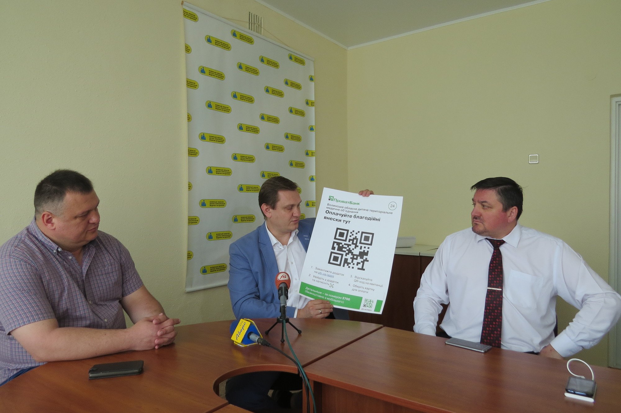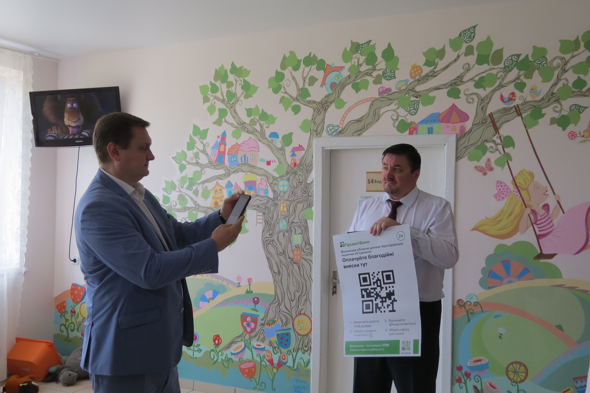 Для того, щоб перерахувати кошти, у приміщенні медоб'єднання діють термінали ПриватБанку. А нині запроваджується ще один спосіб внесення пожертв – за допомогою QR-коду. Код – це зашифроване зображення, у якому міститься інформація про власника рахунку, у цьому випадку – благодійного фонду «Серце в долонях». Код нанесений на плакати, які відтепер вивішені в приміщенні лікарні. Клієнти ПриватБанку, які завантажили на свій смартфон безплатний додаток Приват24, можуть скористатися цією послугою. Для цього необхідно зайти в додаток, обрати функцію сканування коду, ввести необхідну суму пожертви та підтвердити операцію.Директор Північно-Західного регіонального управління ПриватБанку Юрій Войтенко таким чином зміг стати благодійником за лічені секунди. За його прикладом уперше за допомогою QR-коду переказали у фонд «Серце в долонях» пожертви і охочі працівники медзакладу. Тож це доводить на скільки проста процедура.
