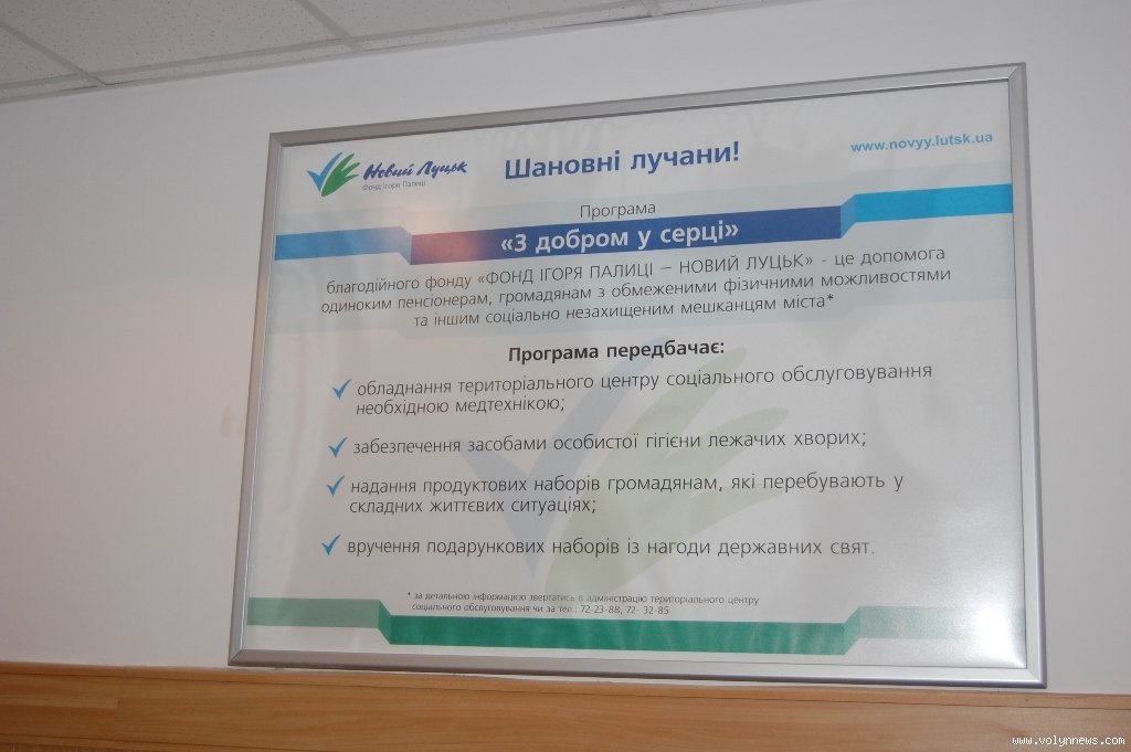 Окрім того, директор терцентру зауважила, що благодійний фонд «Фонд Ігоря Палиці - Новий Луцьк» уже не вперше допомагає закладу. Торік фонд закупив для підопічних закладу 1350 продуктових наборів і 215 упаковок памперсів. «Це таку дало допомогу людям, що вони стали звертатися. Пенсія такої категорії людей – невелика і така підтримка є суттєвою», - зазначила вона.