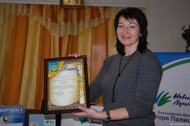 Після передачі Іриною Констанкевич документів на медичне обладнання директору терцентру, Галина Шатецька вручила заступнику голови правління фонду подяку за надання благодійної допомоги соціально незахищеним мешканцям Луцька засновнику фонду «Фонд Ігоря Палиці - Новий Луцьк» Ігорю Палиці.