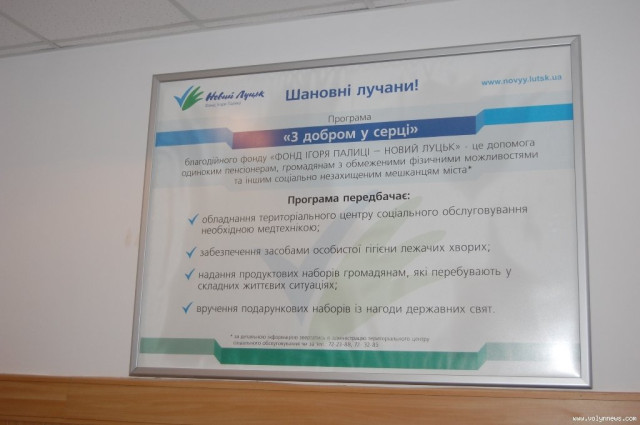 Своєю чергою, заступник голови правління благодійного фонду «Фонд Ігоря Палиці - Новий Луцьк» Ірина Констанкевич розповіла, що програма «З добром у серці» існує вже другий рік і такі акції набувають постійного характеру. Місячний бюджет програми – 25 тисяч гривень, 20 з яких використовують для закупівлі засобів особистої гігієни, зокрема, і для лежачих хворих.