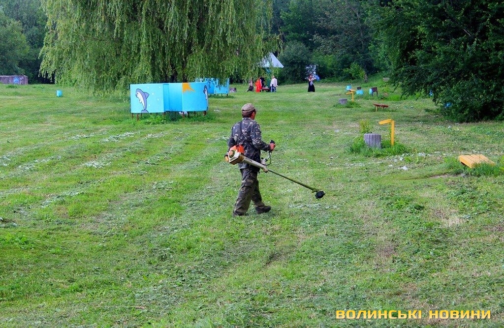 Заблукати у траві по пояс любителям водних процедур не загрожує, адже на пляжі спозарання працюють газонокосарі, тому уся територія – гарненько впорядкована, а свіжоскошена трава лежить рівненькими смужками, наче на футбольному полі. Ймовірно, цю траву згодом використають для годування звірят у Луцькому зоопарку.Утім, зі слів заступника директора департаменту ЖКГ Луцької міської ради Миколи Осіюка, покосили траву комунальники із КП «Парки та сквери».