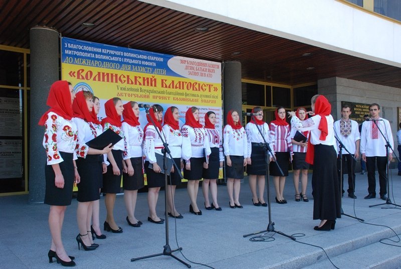Перед початком фестивалю “Благовіст Волині” духовенство єпархії і представники влади поклали квіти до стели загиблих на сході України, поклали до неї вінок від митрополита Волинського і Луцького Ніфонта, помолилися за спокій душ загиблих. І слова пісні, яку і під час концерту перед театром, і вже потім на гала-концерті виконував хор “Покров” недільної школи при кафедральному Свято-Покровському храмі Луцька, щоразу зворушував серця. Пісня об’єднувала, згуртовувала, бо співали діти про те, що не хочуть грати у війну і тримати в руках автомата… Адже дійсність нині вривається і в життя дітей, які через це рано дорослішають, вони пробують догукатися, достукатись до дорослих, аби ті почули їх.