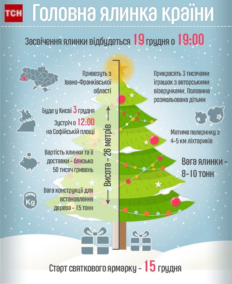 Відповідно до інформації ТСН, ялинка важитиме 15 тонн. На її доставку витратять 50 тисяч гривень. Організатори прикрасять ялинку тисячею яворівських іграшок у формі коників, зірок та янголів. Середній розмір іграшки –70 см, вони виготовлені з натурального дерева.