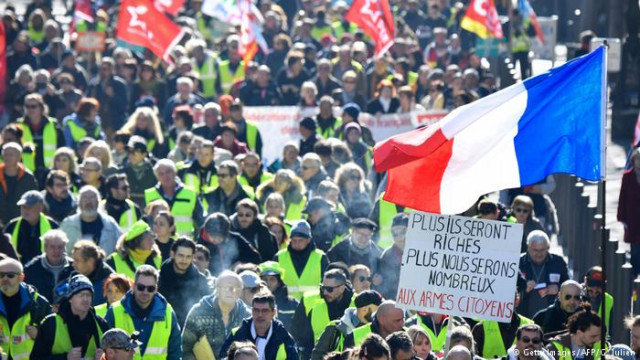 Десятки тисяч людей вийшли у вівторок, 5 лютого, на вулиці Франції за закликом профспілок, протестуючі проти «соціальних негараздів». Вони вимагали збільшення заробітної плати, зниження плати за навчання та справедливих податків. До страйку, у якому взяли участь, у тому числі, і «жовті жилети», закликали одразу кілька профспілок, передає DW.