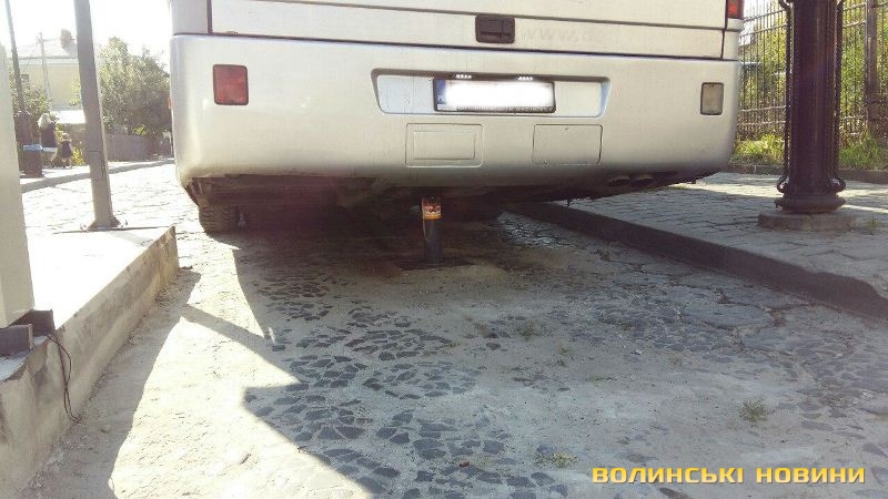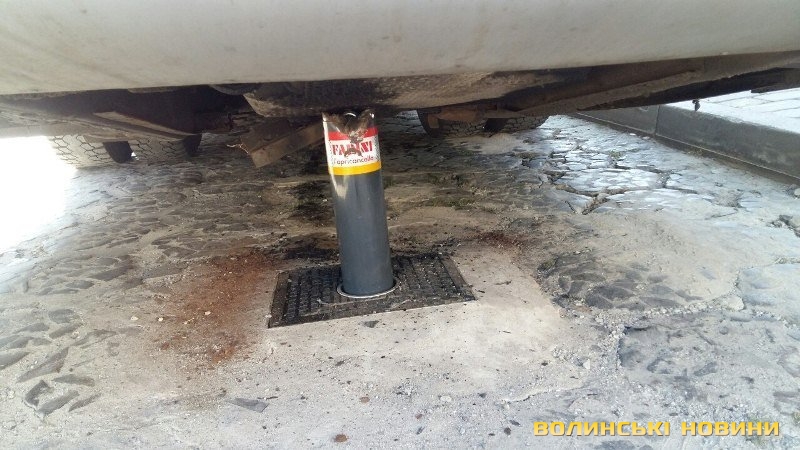 Болард або «рухомий» стовпчик, який покликаний регулювати потік транспорту, пошкодив три автівки, зокрема і автобус з поляками, які завітали цими вихідними до Луцька.
