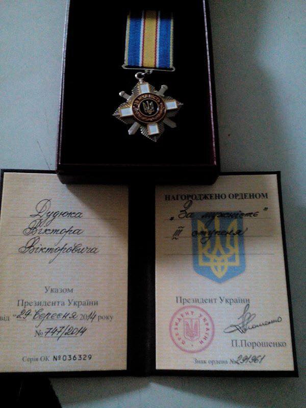Волинянин Віктор Дудюк, який захищав наше право на мир на сході країни, отримав орден «За мужність». Про це в мережі інформує волонтер Наталія Ариванюк.
