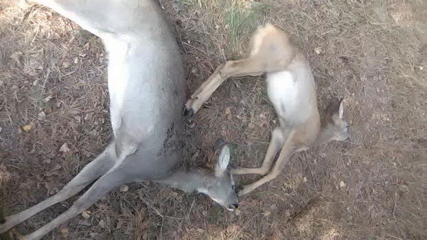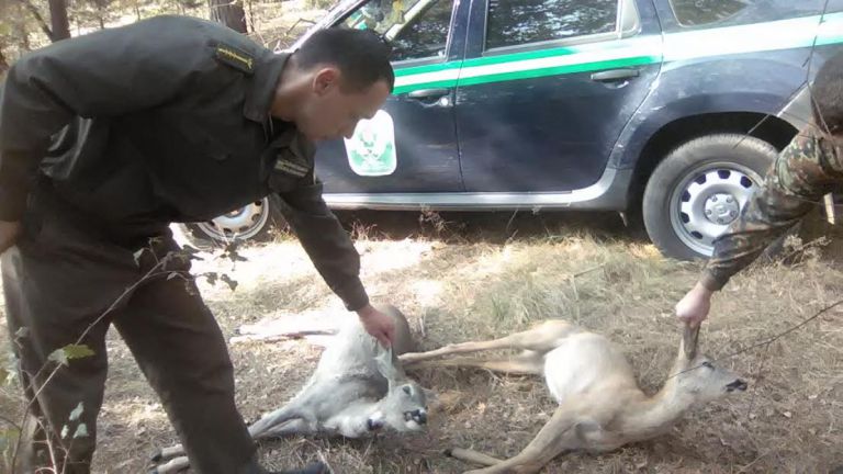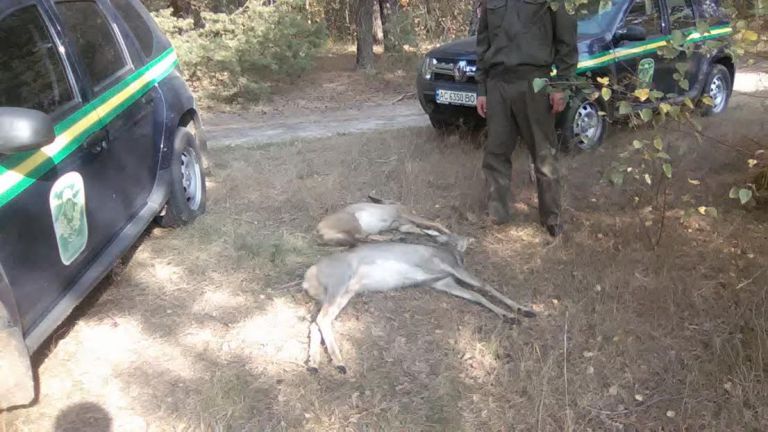 Троє чоловіків полювали в угіддях УТМР. На жаль, уже встигли підстрелити козулю з козеням. Поблизу канави, від якої йшли чоловіки, лісоохоронці побачили дорослу тварину з перерізаним горлом. Поруч лежало козеня.