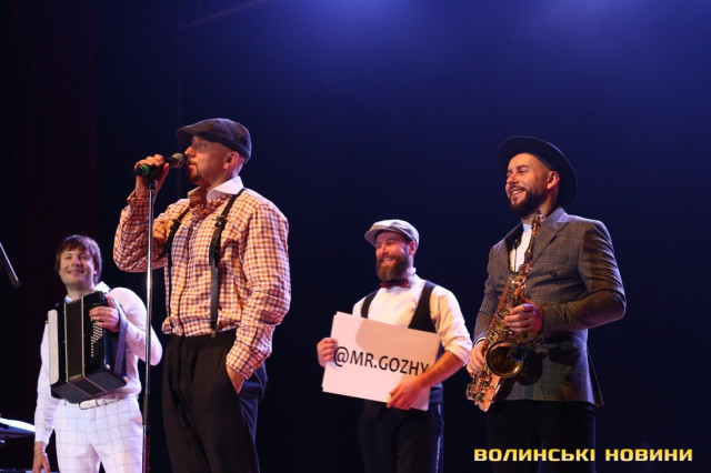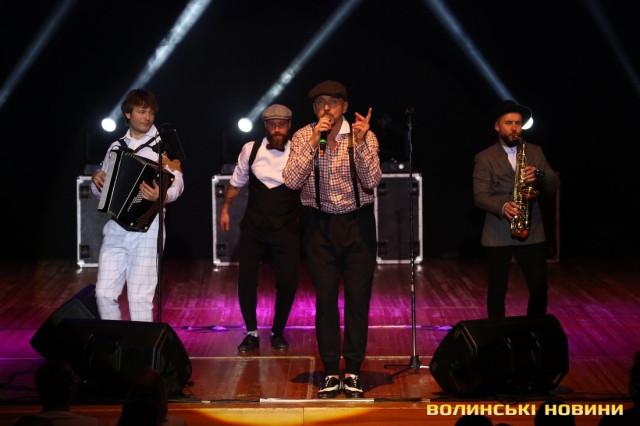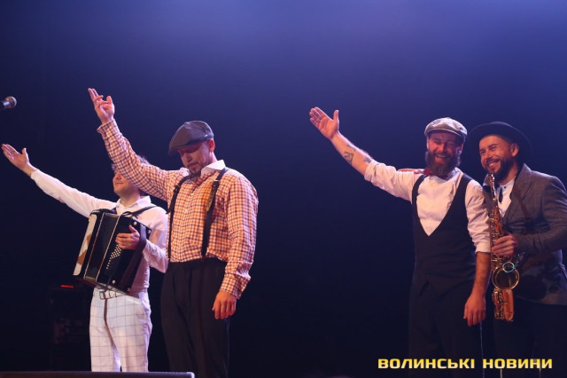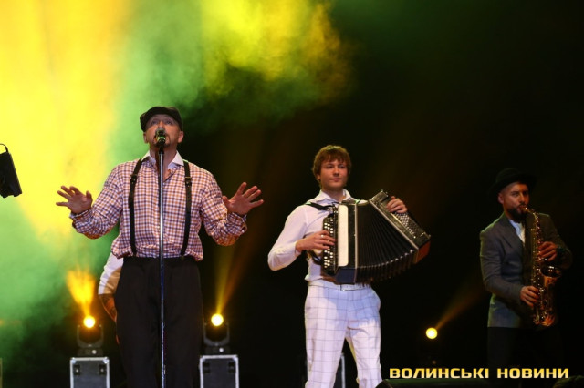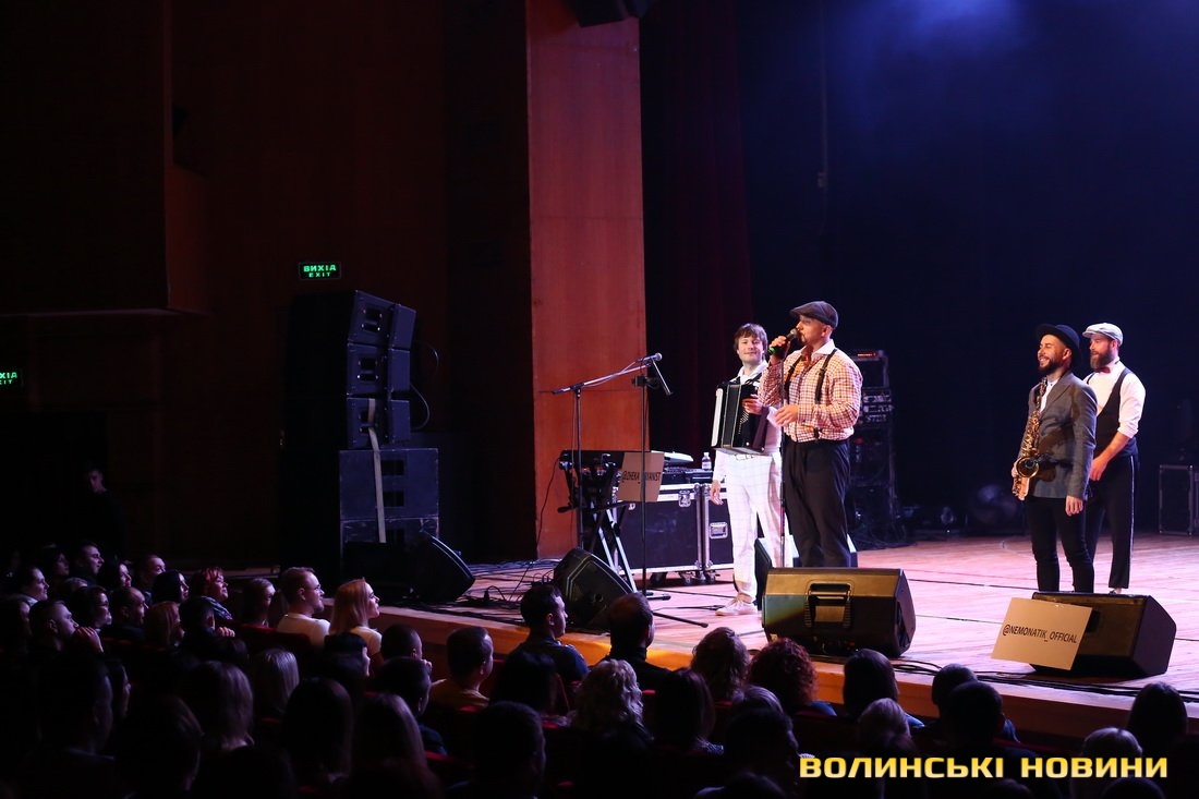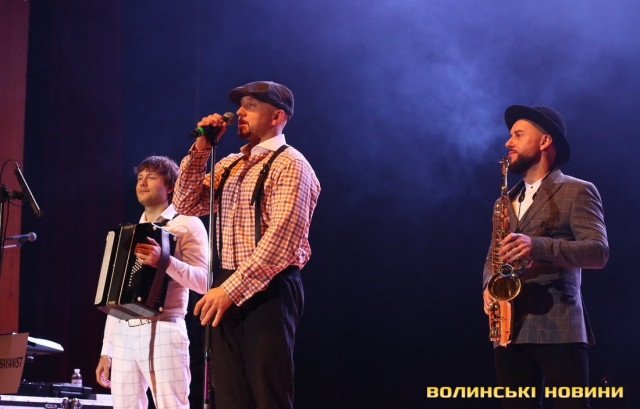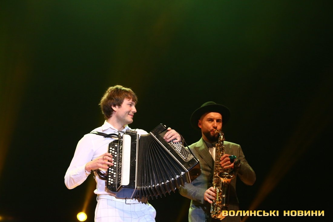 Він також представив свою команду – баяніста Євгенія, танцюриста Артема і саксофоніста Віталія (NEMONATIK), який відразу вразив публіку вражаючою схожістю з відомим співаком Дмитром Монатиком.
