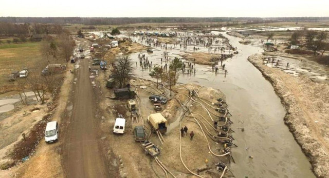 Сіре решето на знімках зверху — це розмита помпами земля.