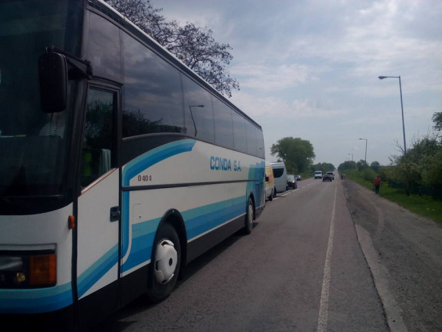На трасі «Ковель-Луцьк» тим часом вже утворився затор, у якому – близько ста автівок та автобусів.
