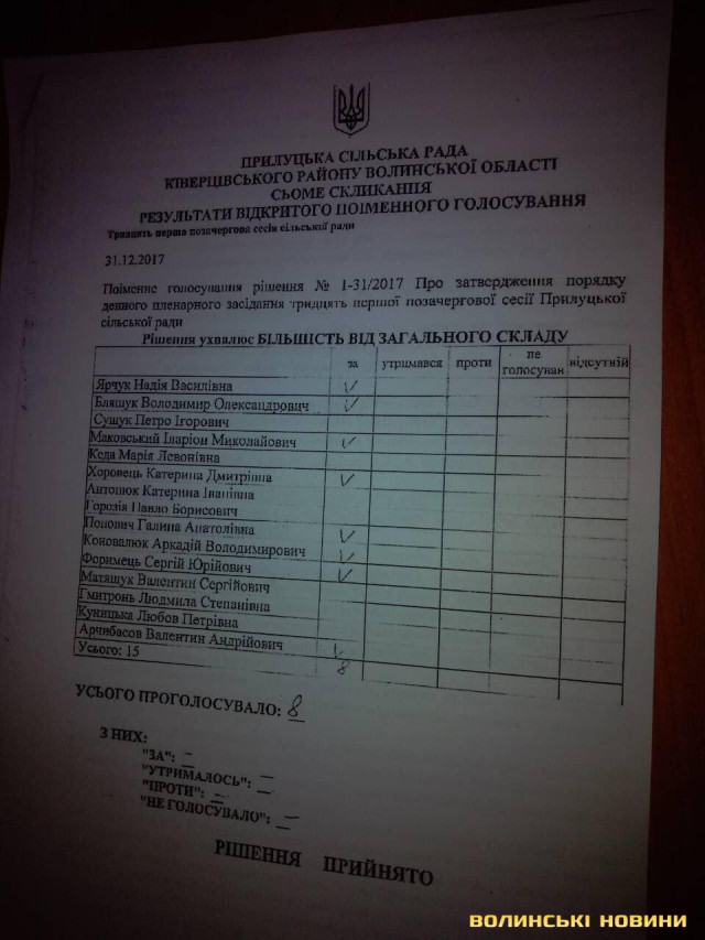 Через ветування об'єднання з Луцьком головою Прилуцького в сільраді – розкол