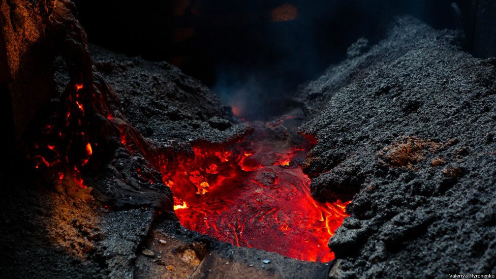 Але ще страшніше, ніж у шахті - у доменній печі. Бо у шахті тихо, а в печі ріки розпеченого чавуну, усе грюкає - розповідають робітники. Піч на фото - одна з найбільших у колишньому СРСР. Коли перебуваєш всередині, обличчя буквально обпалює, розповіла авторка знімків.