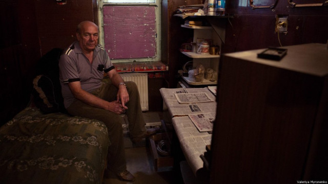 Ці квартири давно не бачили ремонту та нових меблів. Житло цього чоловіка "оздоблене" газетами та рекламними буклетами, вікна затулені деревиною, щоб було тепліше - зими на Донбасі, хоча й здебільшого без снігу, але холодні.