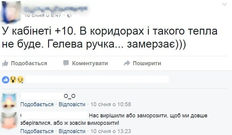 Наприкінці минулого тижня, з приходом морозів, температурний режим в будівлі впав, подекуди батареї взагалі не гріють.
