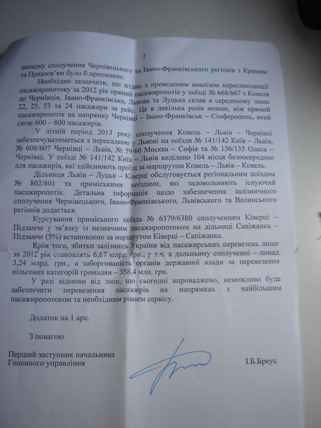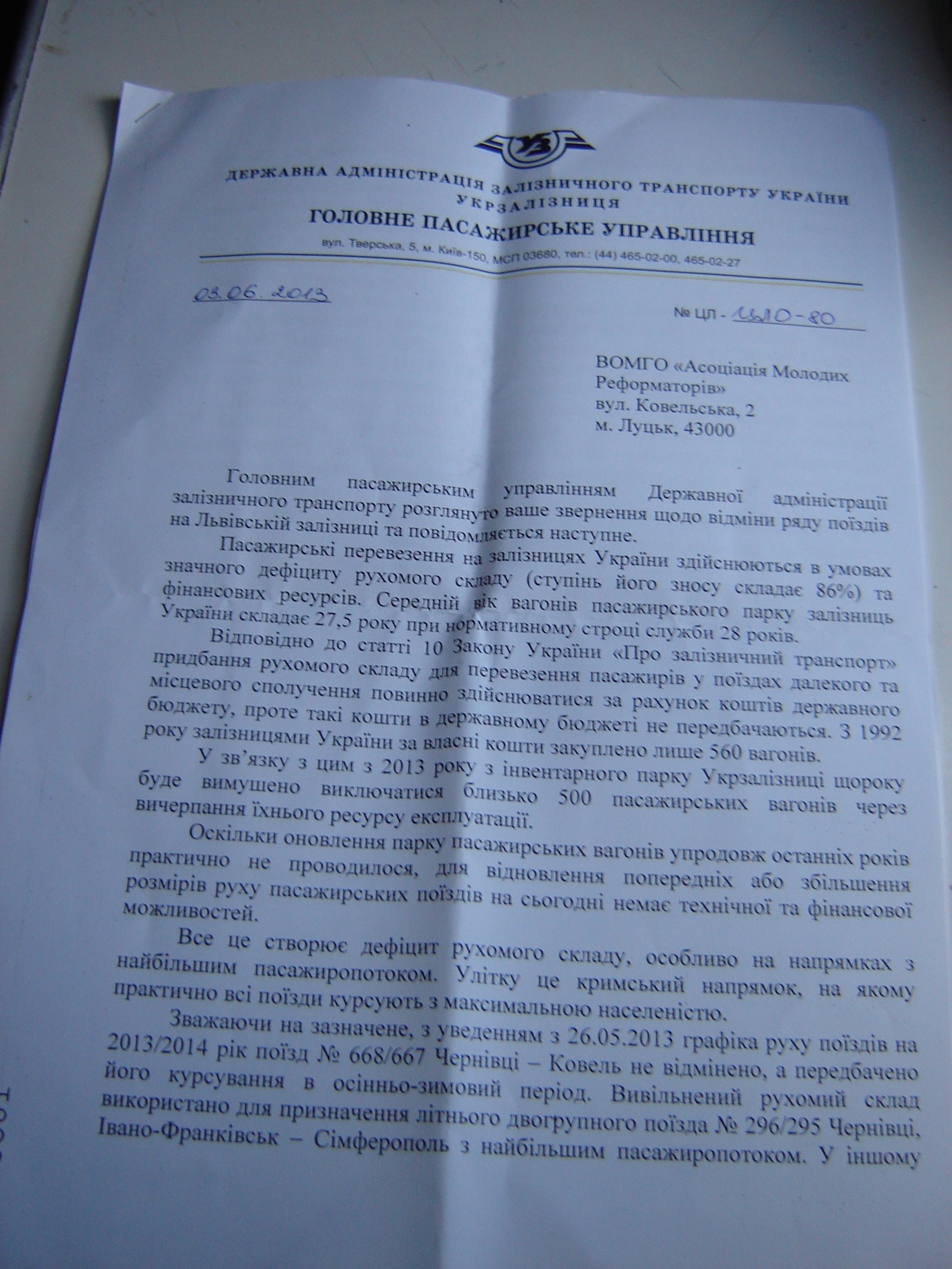 Чому скасували потяг Ковель-Чернівці. ОФІЦІЙНО. ДОКУМЕНТИ