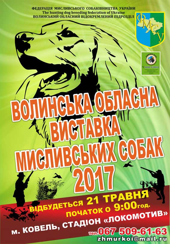 Обласна виставка мисливських собак відбудеться у неділю, 21 травня, на стадіоні «Локомотив» м. Ковеля. Організовує захід - Волинський обласний відокремлений підрозділ Федерації мисливського собаківництва України, інформує Про Ковель.