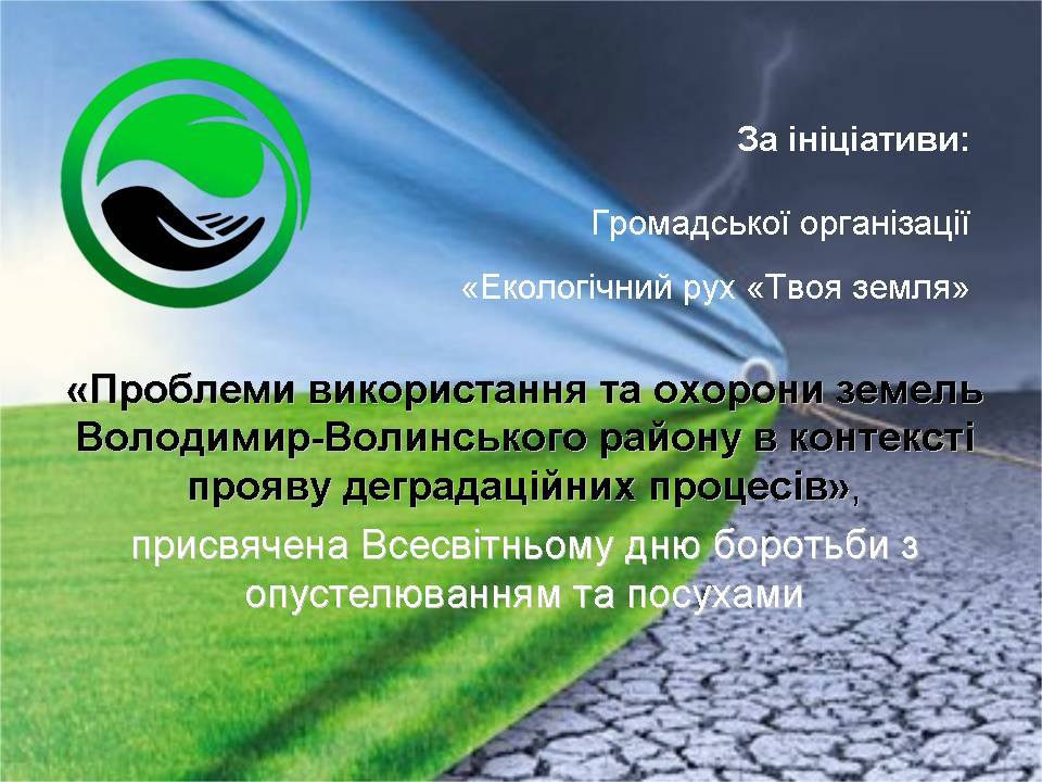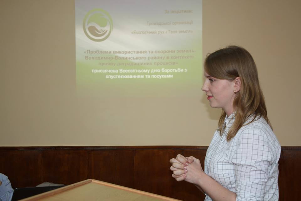 За ініціативи громадської організації «Екологічний рух «Твоя земля» у Володимирі-Волинському відбувся круглий стіл «Проблеми використання та охорони земель Володимир-Волинського району в контексті прояву деградаційних процесів» за участю усіх служб дотичних до теми боротьби деградацією земель та опустелюванням.