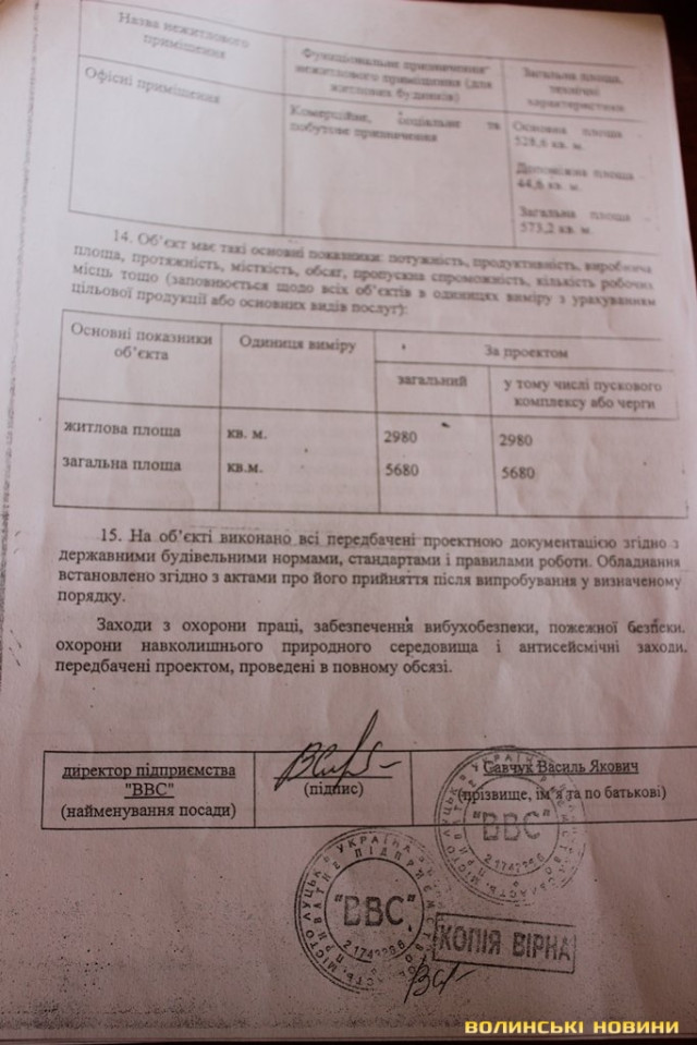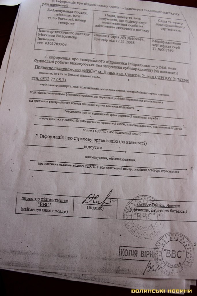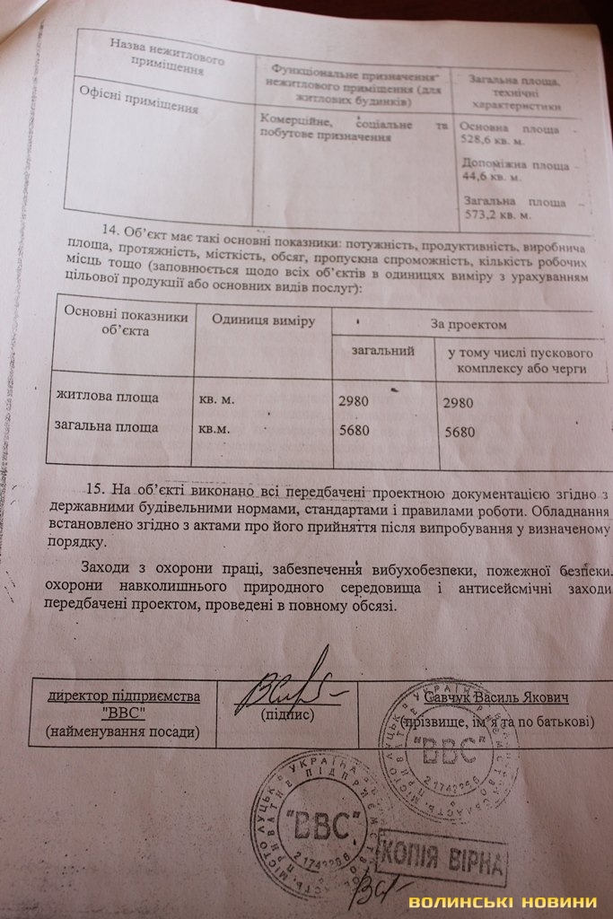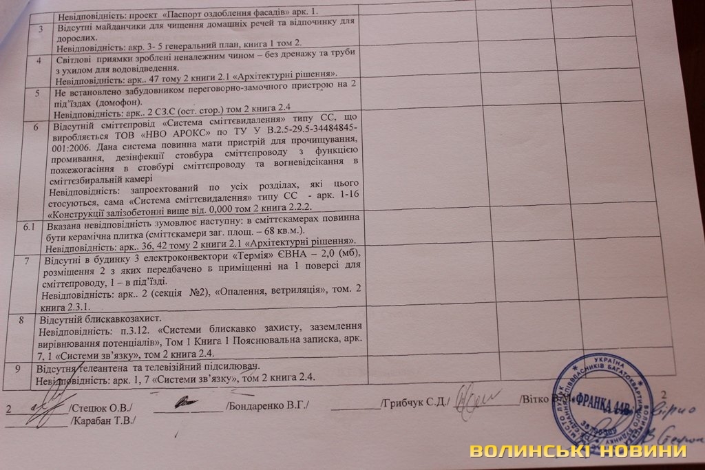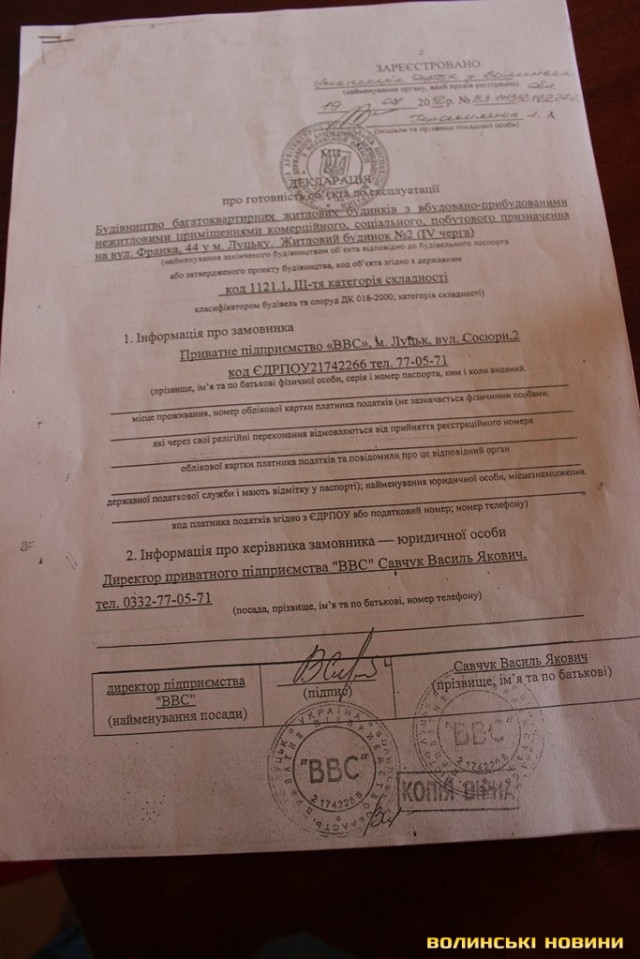 Головний інженер ПП «ВВС» зазначив, що підприємство зареєструвало офіційний документ про готовність будинку до експлуатації – декларацію. Це означає, що будинок відповідає усім містобудівним вимогам і затвердженим документам.