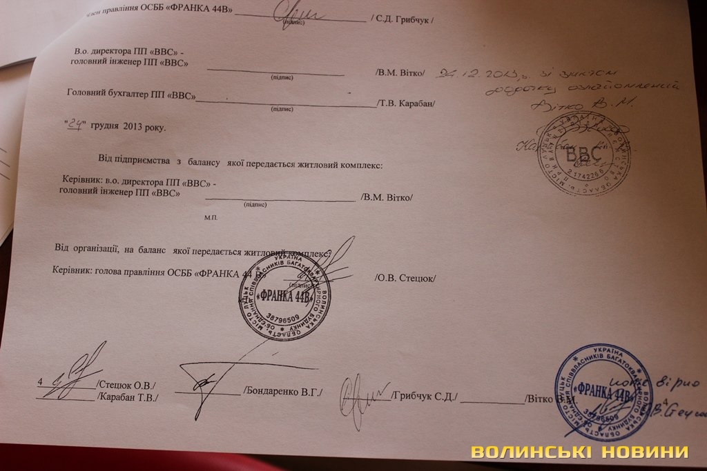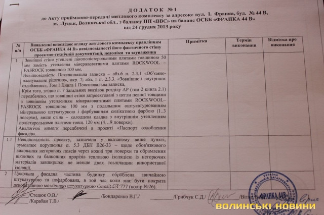 Усі недоліки керівництво ОСББ вказало в додатку до акту прийому-передачі будинку на баланс об’єднання. Щоправда, керівник ПП «ВВС» Василь Савчук на момент передачі був у відрядженні. Виконувачем обов’язків призначили головного інженера підприємства Володимира Вітка.