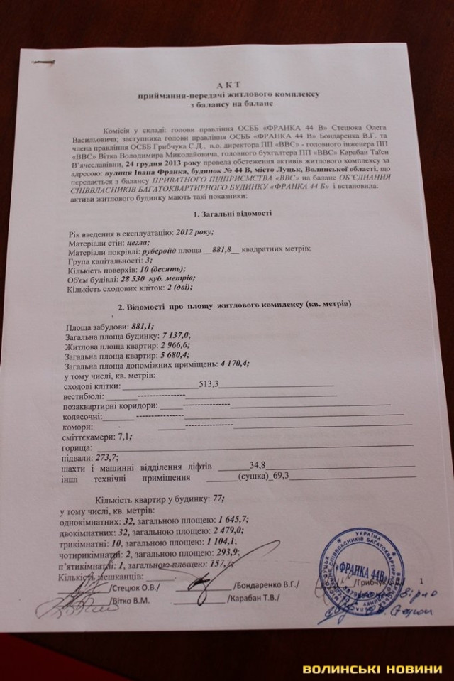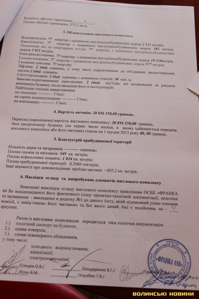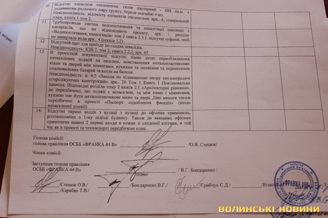 Коли матеріал уже готувався до виходу стало відомо, що ОСББ «Франка, 44 в» усе ж звернулося до правоохоронних органів. Після заяви про кримінальне правопорушення, прокуратура міста Луцька внесла дані в Єдиний реєстр досудових розслідувань за статтею 366 КК України (службове підроблення).