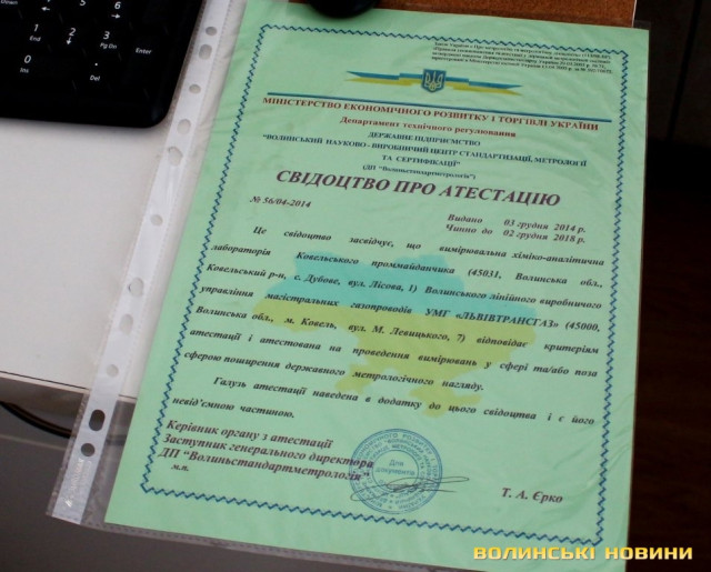 Працівниця лабораторії ПАТ «Укртрансгаз», хімік 2-ї категорії Марія Горобець розповіла, що вимірювання якості газу здійснюють за допомогою спеціального приладу – хроматографа. Атестує лабораторію «Волиньстандартметрологія».
