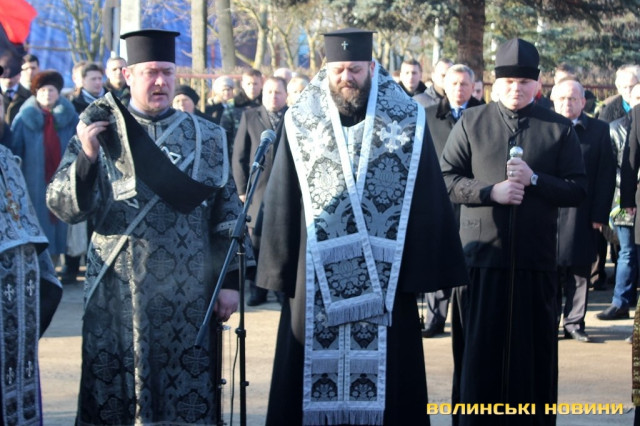 Після молитви за душі полеглих Героїв до всіх присутніх звернувся Митрополит Луцький та Волинський Михаїл. Він пояснив: цей день завжди є днем скорботи і піднесення. Скорботи - бо згадуємо тривожні події, коли молодь пішла захищати незалежність молодої держави. Але ми водночас і надихаємось від цих молодих, малоозброєних, але глибоко люблячих свою державу хлопців, які йшли грудьми захищати Україну.