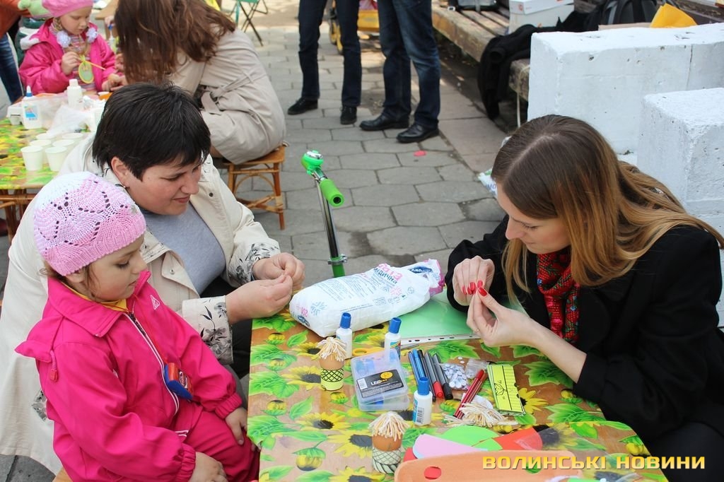 До слова, найбільший інтерес такі майстерки та забави викликають саме в дітлахів: малеча хапає батьків за ручку і тягне до столів з різнокольоровими прикрасами. Щоправда, все залежить від планів батьків. Адже хтось спочатку йде гуляти з малечею в парк, а хтось відразу примощується біля дитини і допомагає клеїти аплікацію чи оздоблювати яйце.