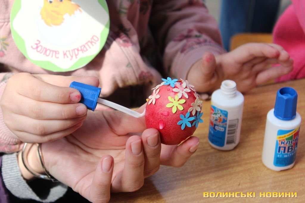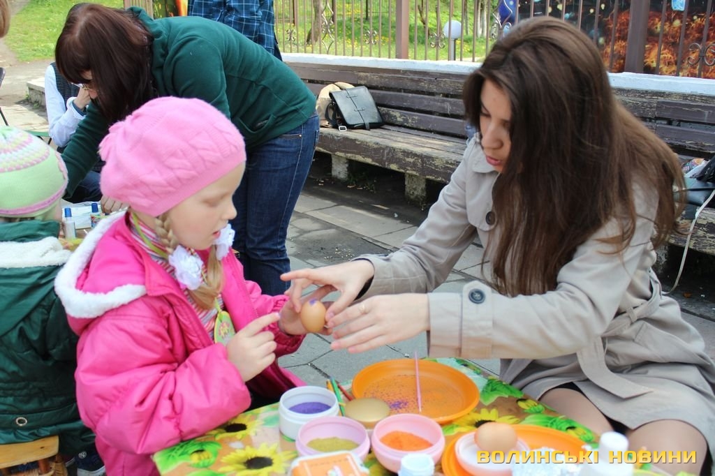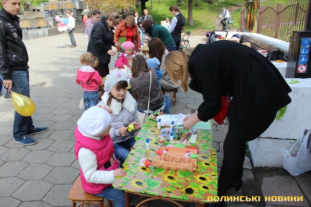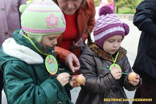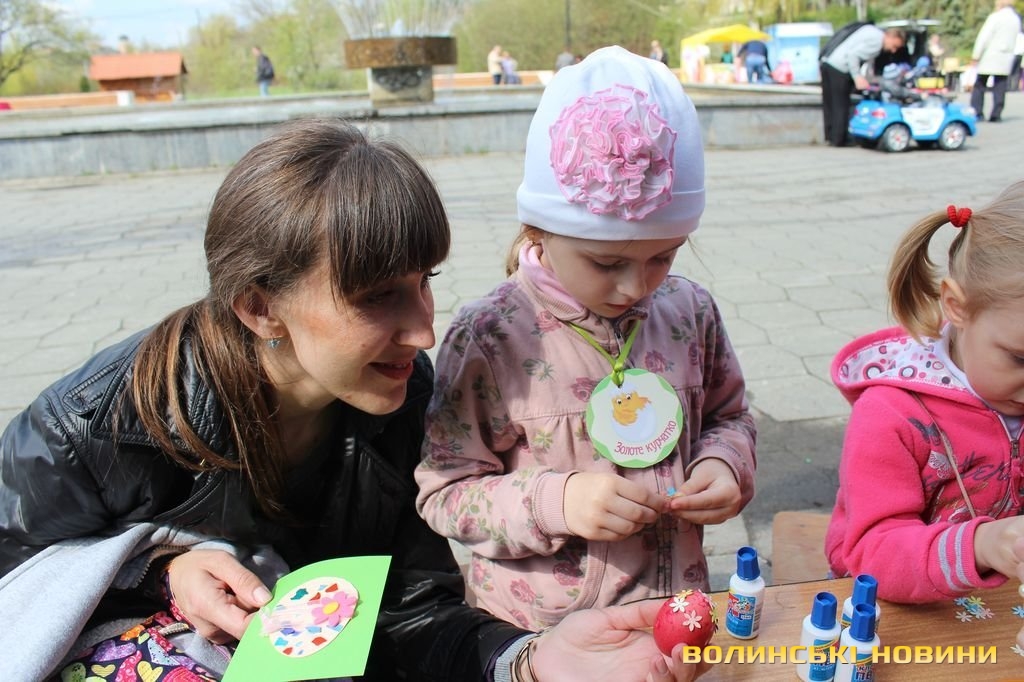 Безліч дошкільнят разом з батьками долучились до виготовлення оригінальних іграшок та Великодніх прикрас у луцькому Парку відпочинку імені Лесі України. «Вдома розмальовки до рук взяти не хоче, лише носиться як вихор. А тут спокійненько сів, клеїть на яєчко бісер і прикраси. Це в нас буде така Пасхальна композиція», - розповідає мама маленького Сашка, допомагаючи сину.