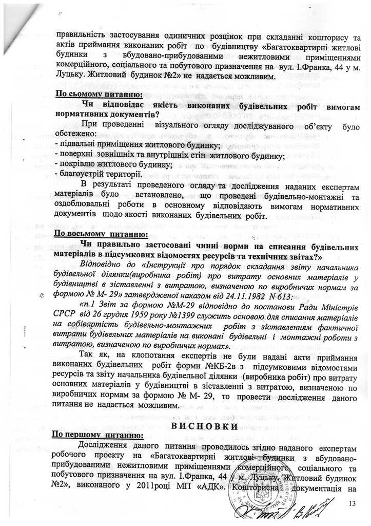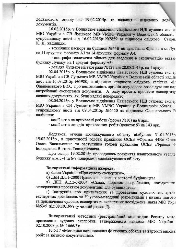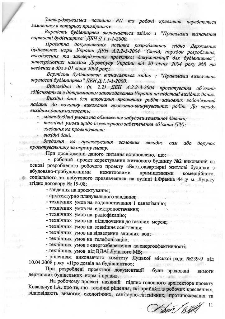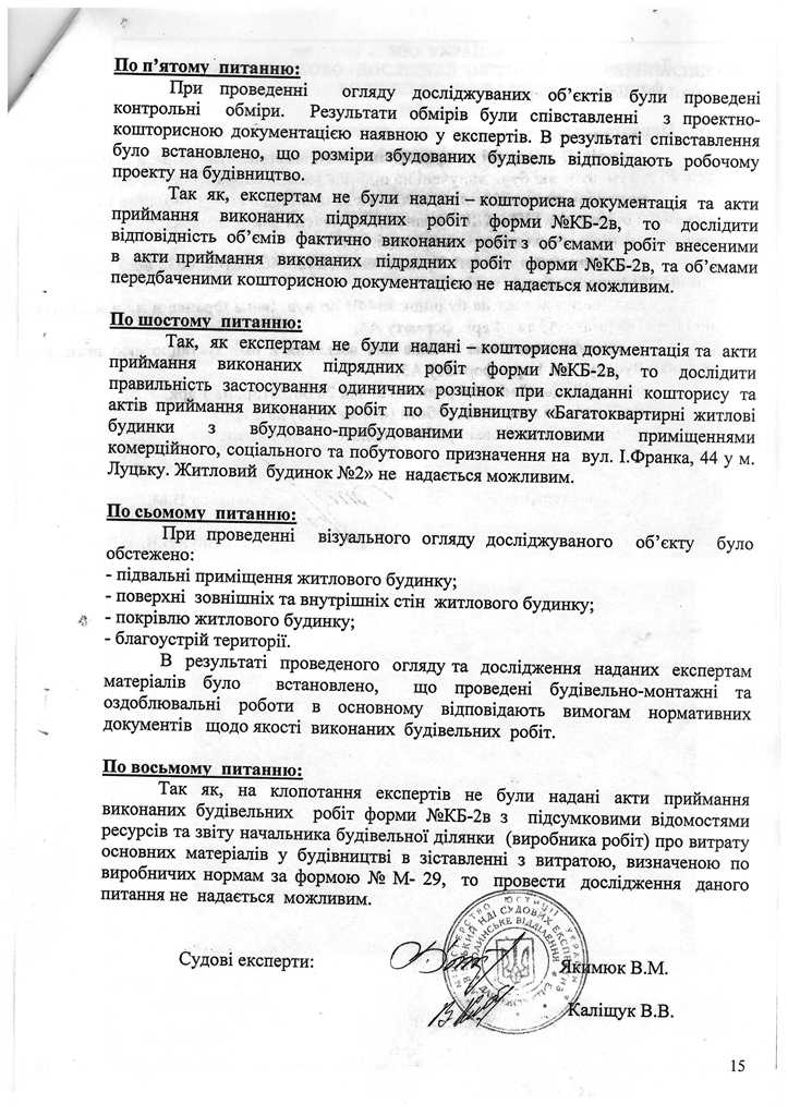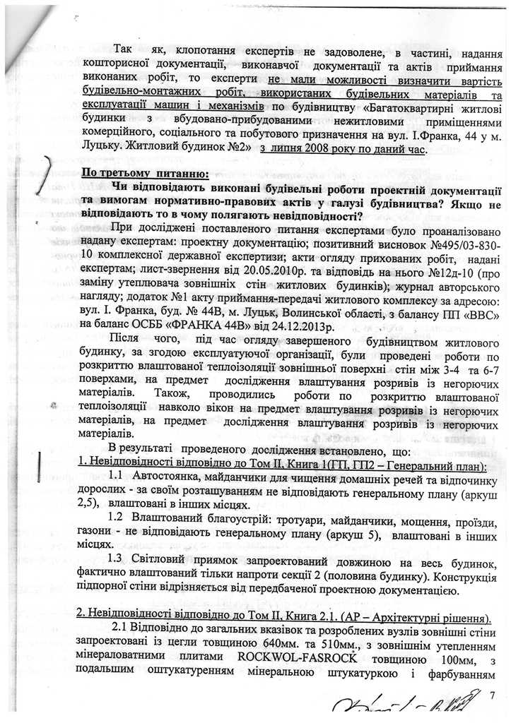 Окрім звернення до Держархбудінспекції, 2 роки тому правоохоронці розпочали досудове розслідування за статтею 366 КК України за фактом службового підроблення при внесені завідомо неправдивих даних до декларації про готовність об’єкта (будинку №44В, що yf вул. І.Франка в м. Луцьку) до експлуатації, яка зареєстрована 19.07.2012 за №ВЛ14312122272 в Інспекції ДАБ у Волинській області.